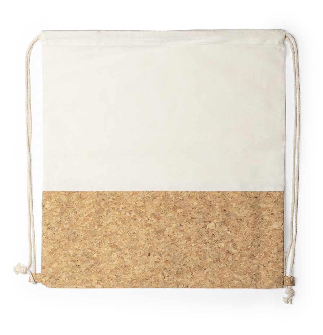 Mochila de cuerdas de línea nature en suave algodón y corcho natural.Cuerdas autocierre en tono natural y esquinas reforzadas.