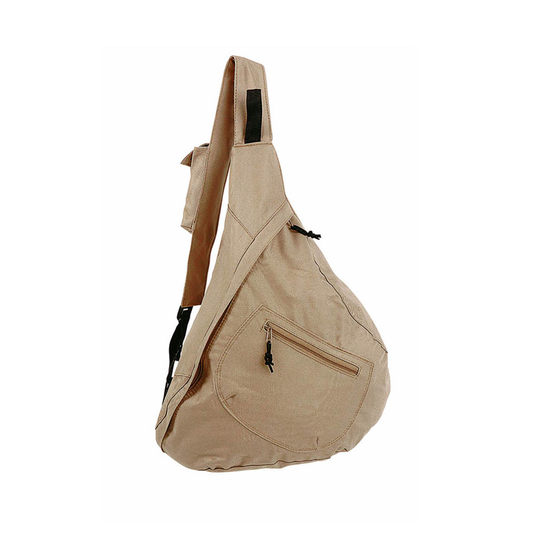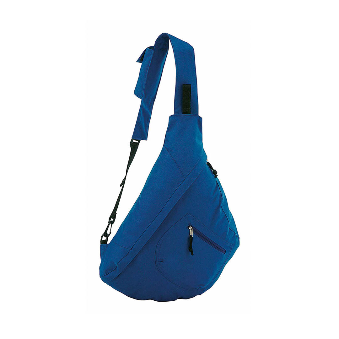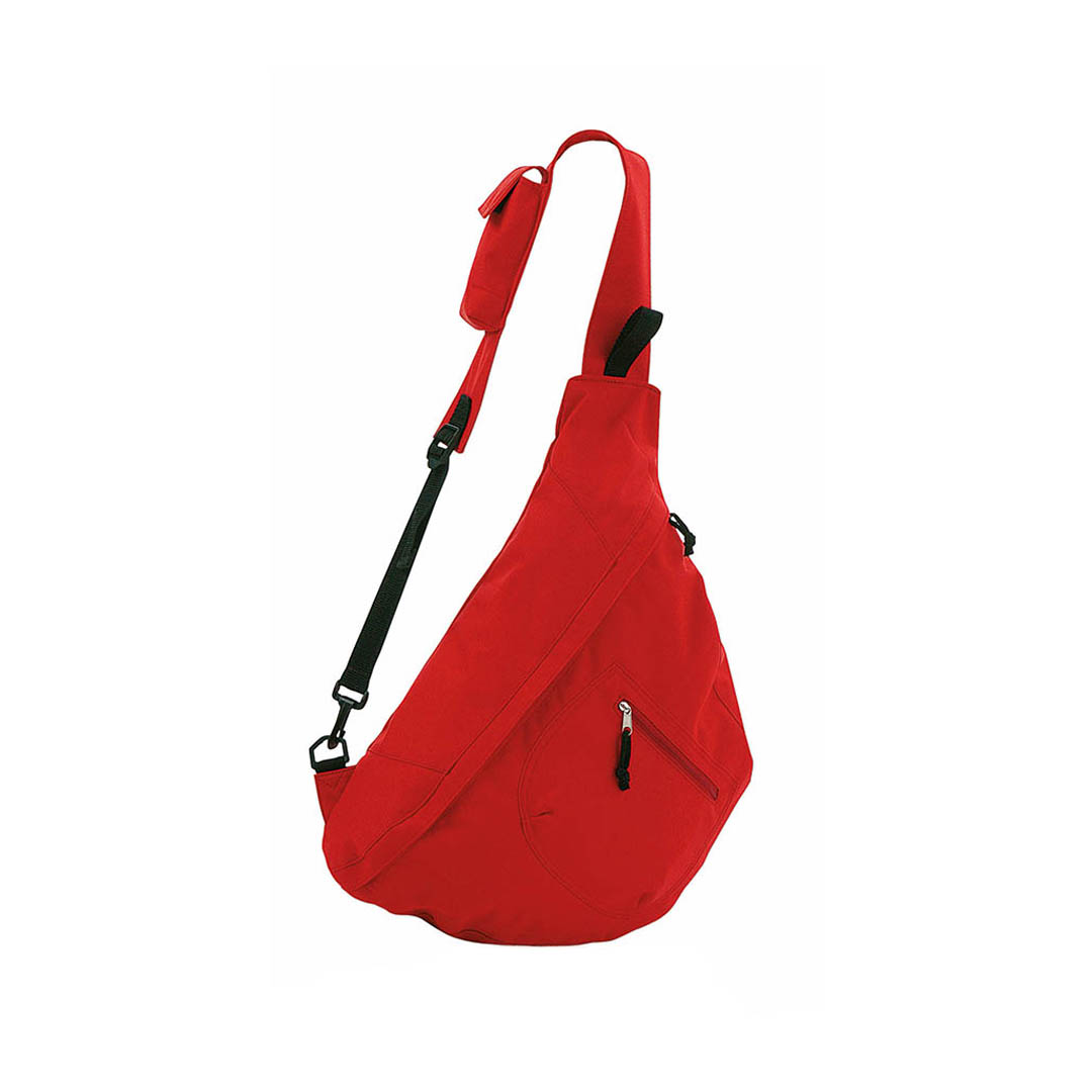 Mochila bandolera en resistente poliéster 600D de desenfadado diseño en variada gama de colores, con cierre de cremallera a juego y bolsillo frontal de tirador con cinta para fácil apertura. Accesorios en color negro, esquinas reforzadas y cinta bandolera