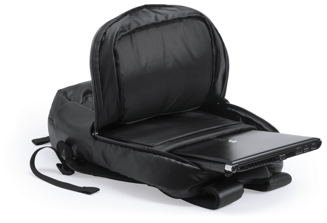 Elegante y resistente mochila resistente al agua en poliéster 1680D y polipiel de alta calidad. Con compartimento interior con salida USB para conexión de powerbank -no incluido-, incluye cable micro USB de 1 metro de largo para total comodidad en la carg Conexión USB. Bolsillo Acolchado para Portátil y Tablet. Parte Trasera y Cintas Acolchadas
