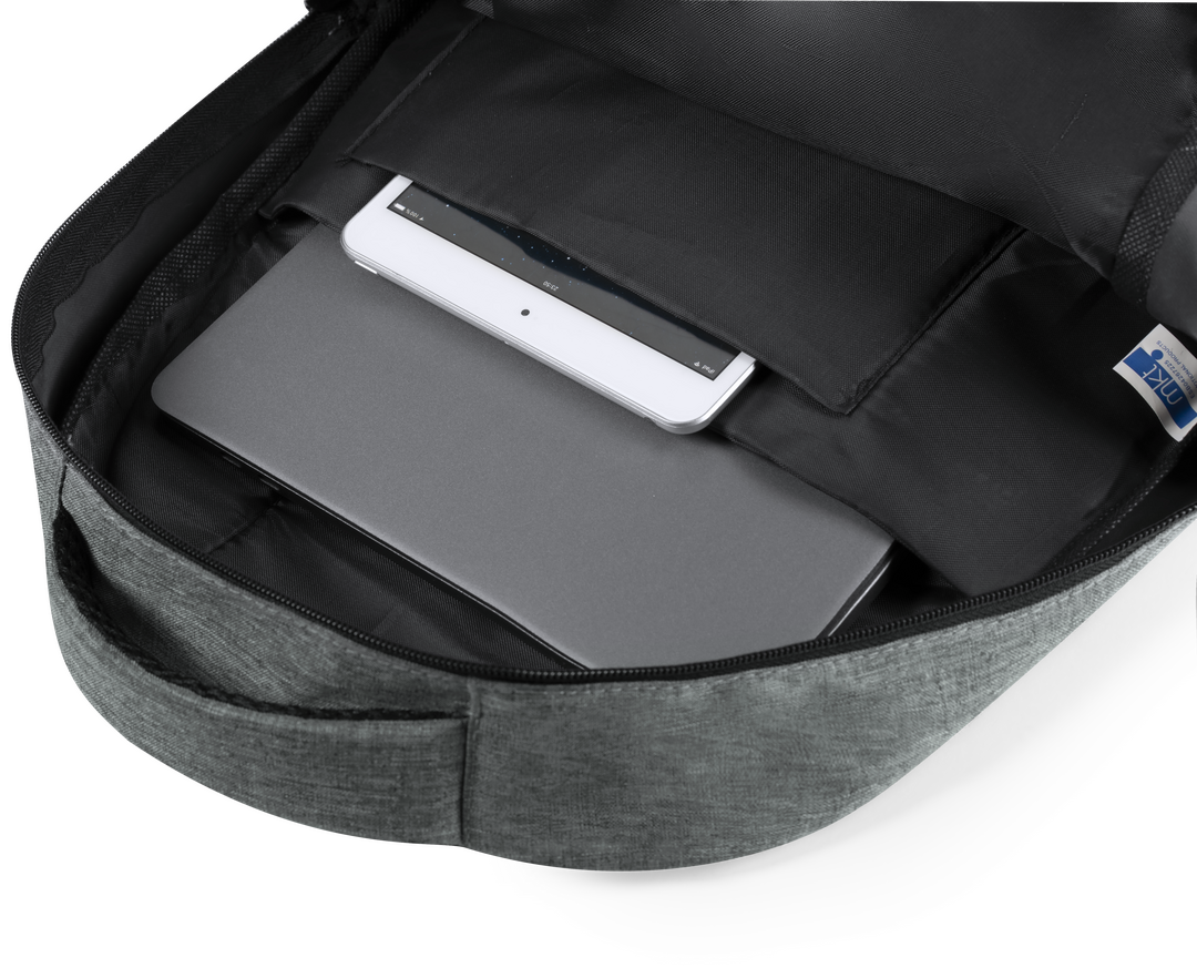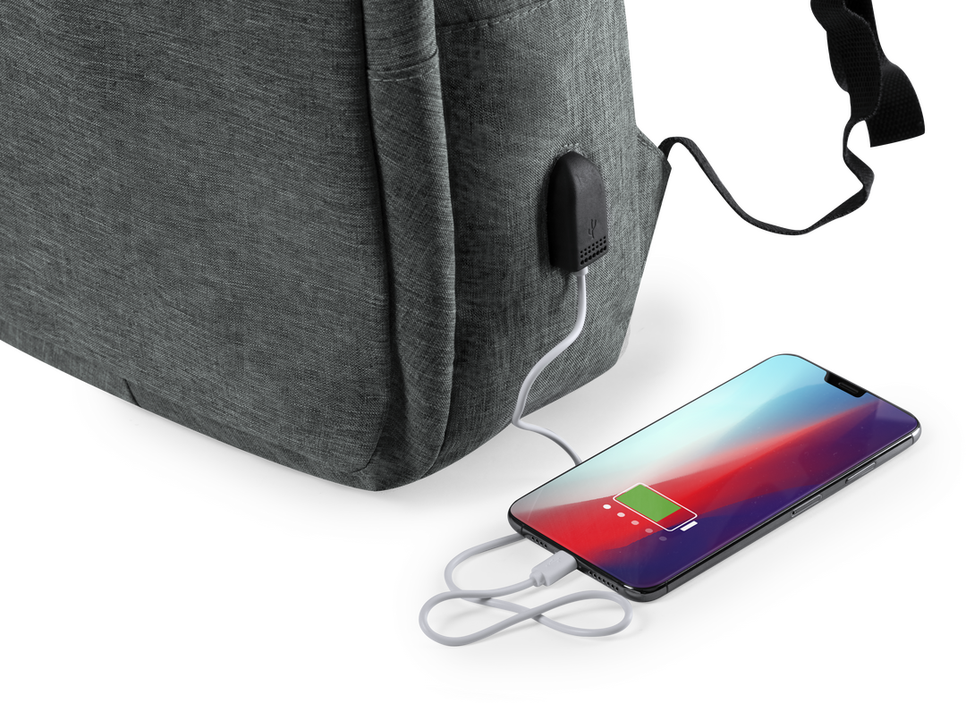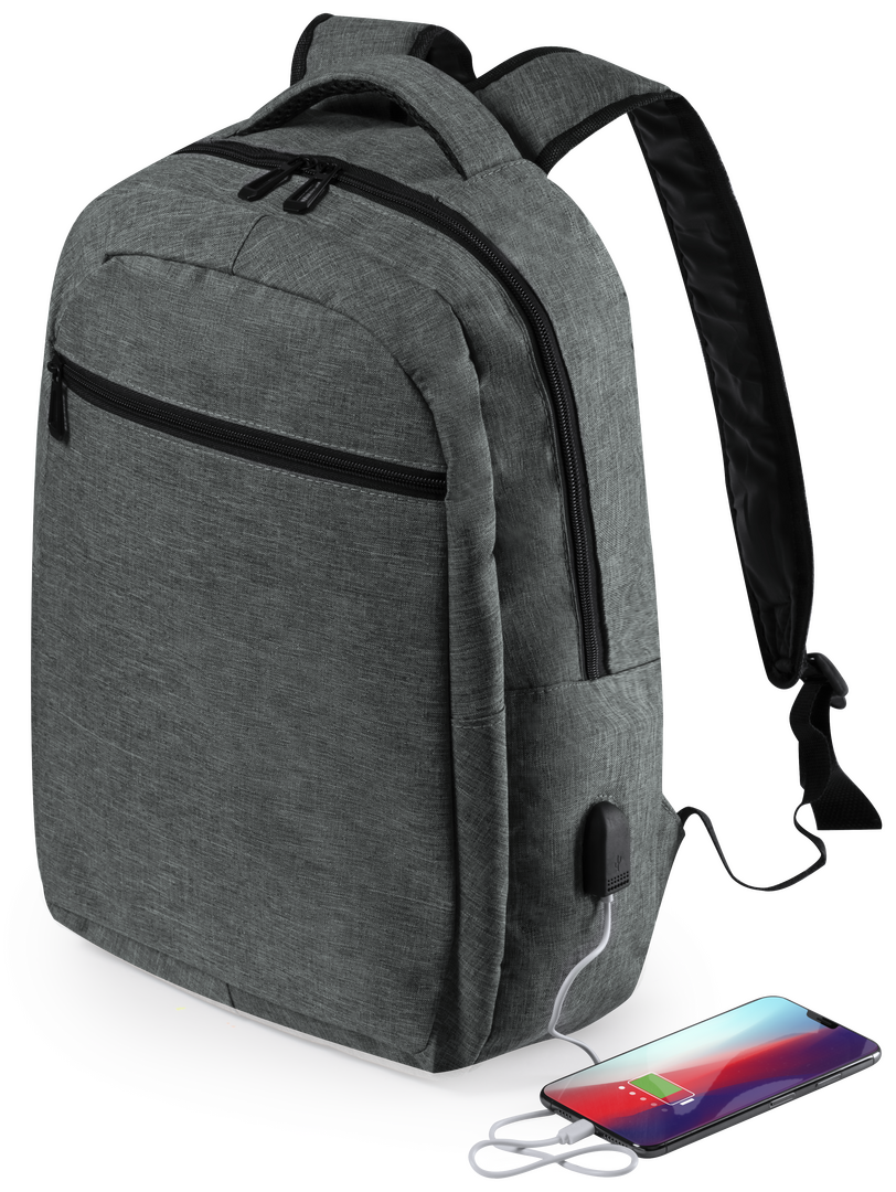 Mochila de negocios en resistente poliéster 600D. Con cierre de cremallera de doble tirador y bolsillo en frontal. Interior con bolsillos acolchados para tablet de hasta 10 pulgadas y ordenador portátil de hasta 15 pulgadas, con estación de carga USB (cab Conexión USB. Bolsillo Acolchado para Portátil y Tablet. Parte Trasera y Cintas Acolchadas