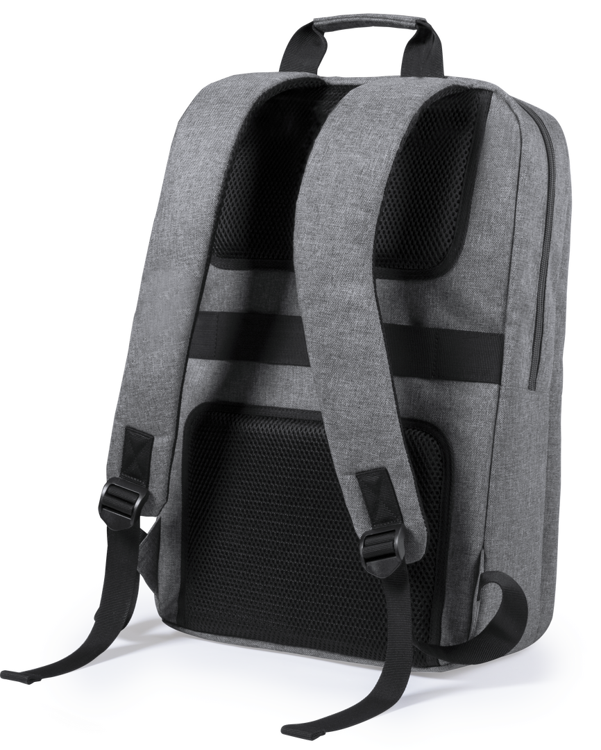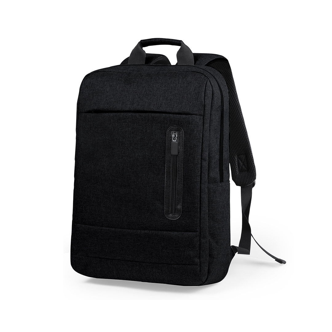 Mochila de resistente nylon 600D de diseño rectangular con cierre de cremallera, bolsillo frontal para smartphone y asa reforzada. Con acolchado ergonómico en espalda y cintas de hombros, incluye compartimento interior acolchado para ordenador portátil de Bolsillo Acolchado para Portátil. Parte Trasera y Cintas Acolchadas