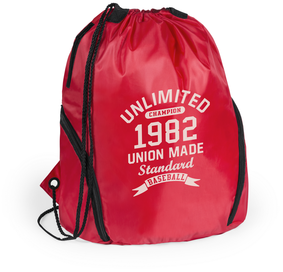 Versátil mochila de cuerdas en poliéster 210D en atractivo diseño bicolor. Con 3 bolsillos exteriores de cremallera y accesorio en cierre para acople de asa de transporte con cierres de mosquetón. Cuerdas autocierre en color negro y esquinas con argollas