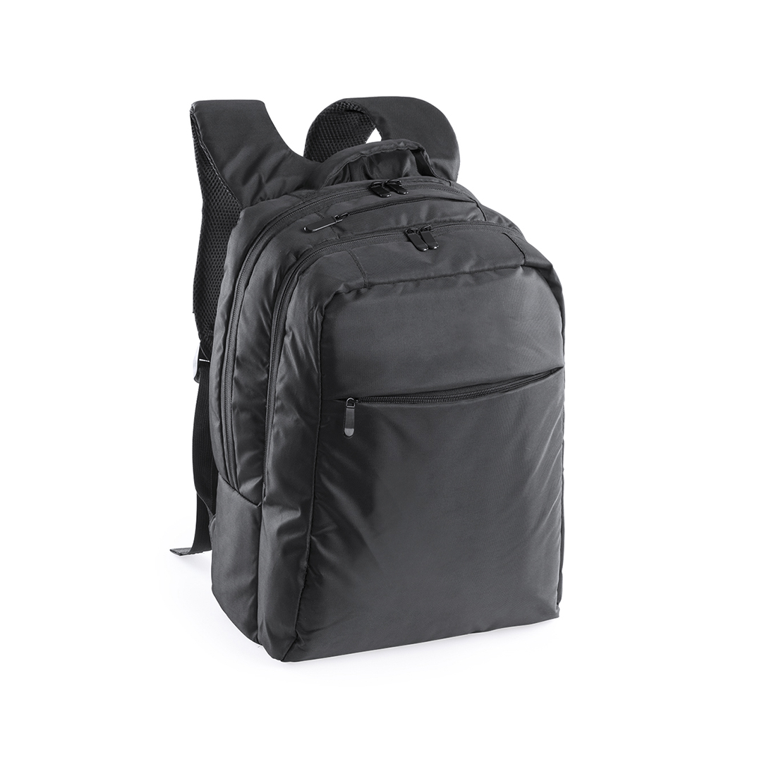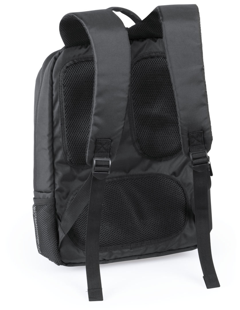 Mochila de resistente nylon 600D con cierre de cremallera bolsillos frontales y asa reforzada. Con acolchado ergonómico en espalda y cintas de hombros, incluye compartimento interior acolchado para ordenador portátil de hasta 15 pulgadas. Bolsillo Acolchado para Portátil. Parte Trasera y Cintas Acolchadas