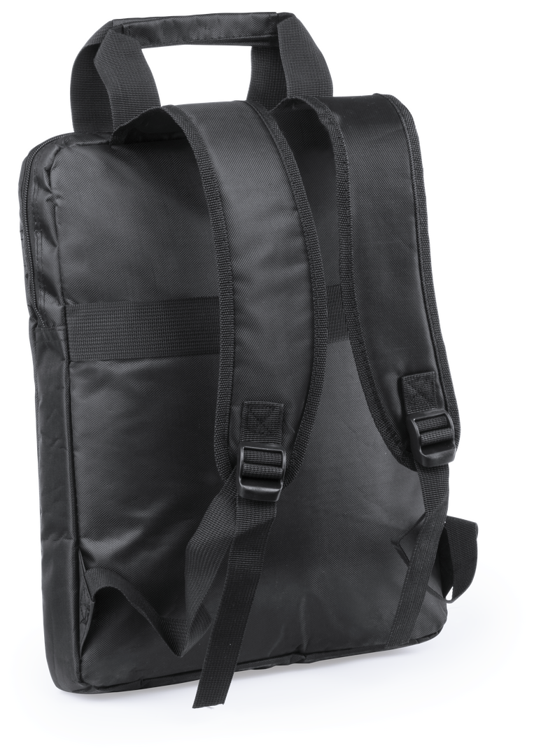 Mochila en elegante poliéster 840D de elegante acabado bicolor con acolchado total en todo el cuerpo y cintas de hombros. Bolsillo exterior con cierre de cremallera, asas de transporte y cintas de hombros reforzadas a juego y compartimento interior acolch Bolsillo Acolchado para Portátil. Parte Trasera y Cintas Acolchadas