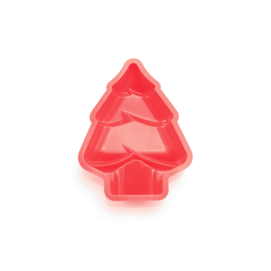 Molde de silicona en llamativo color rojo navideño con forma de árbol de navidad. Resistencia a temperaturas de hasta 240ºC. Temperatura Max 240°C