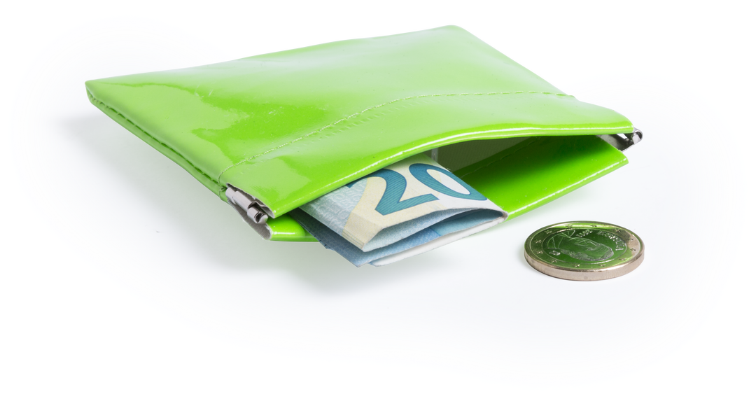 Monedero de diseño rectangular con suave cuerpo acabado en PVC en variada gama de vivos colores fluorescentes. Compartimento principal de apertura a presión lateral.