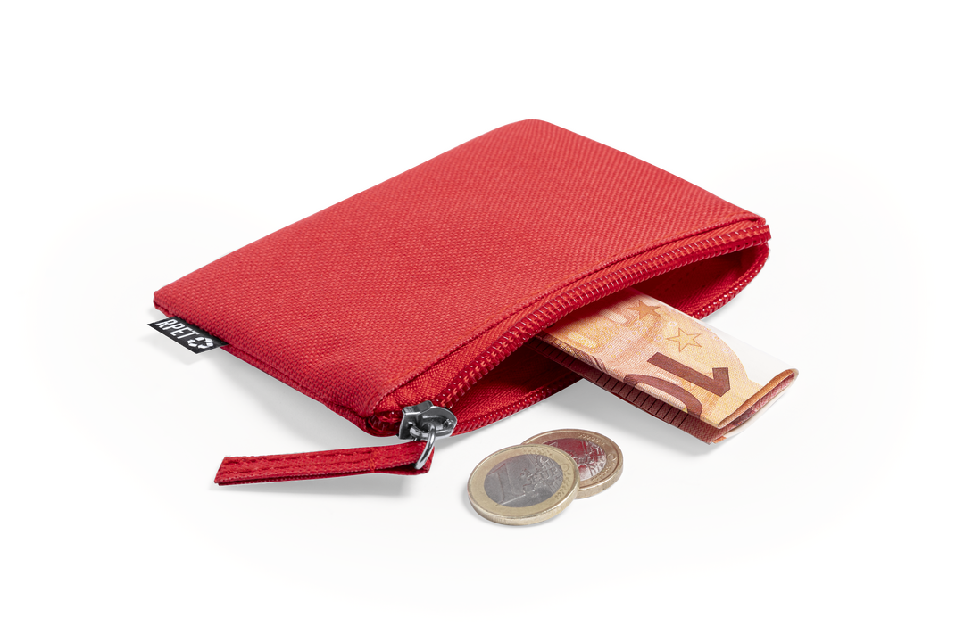 Monedero de línea nature en resistente 600D RPET, elaborado a partir de plástico reciclado para así fomentar la reutilización de residuos plásticos y contribuir a la sostenibilidad del planeta. Con cierre de cremallera y tirador a juego. Disponible en var