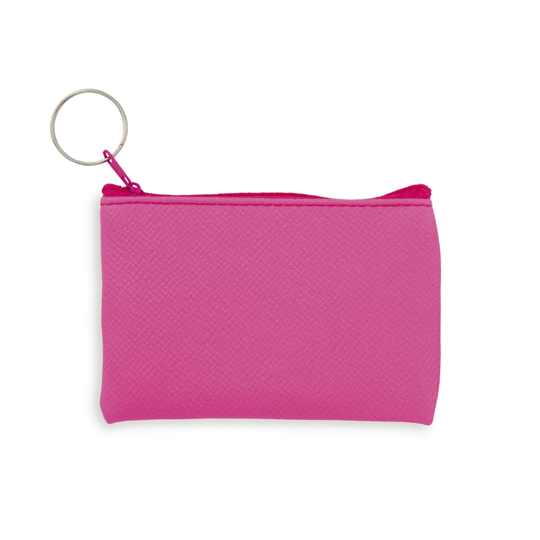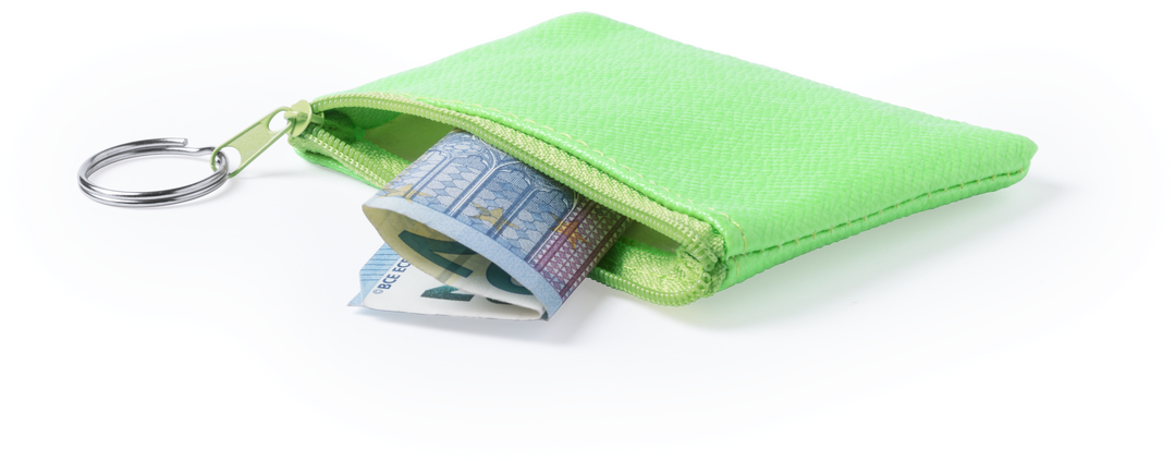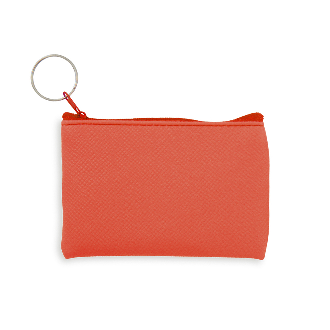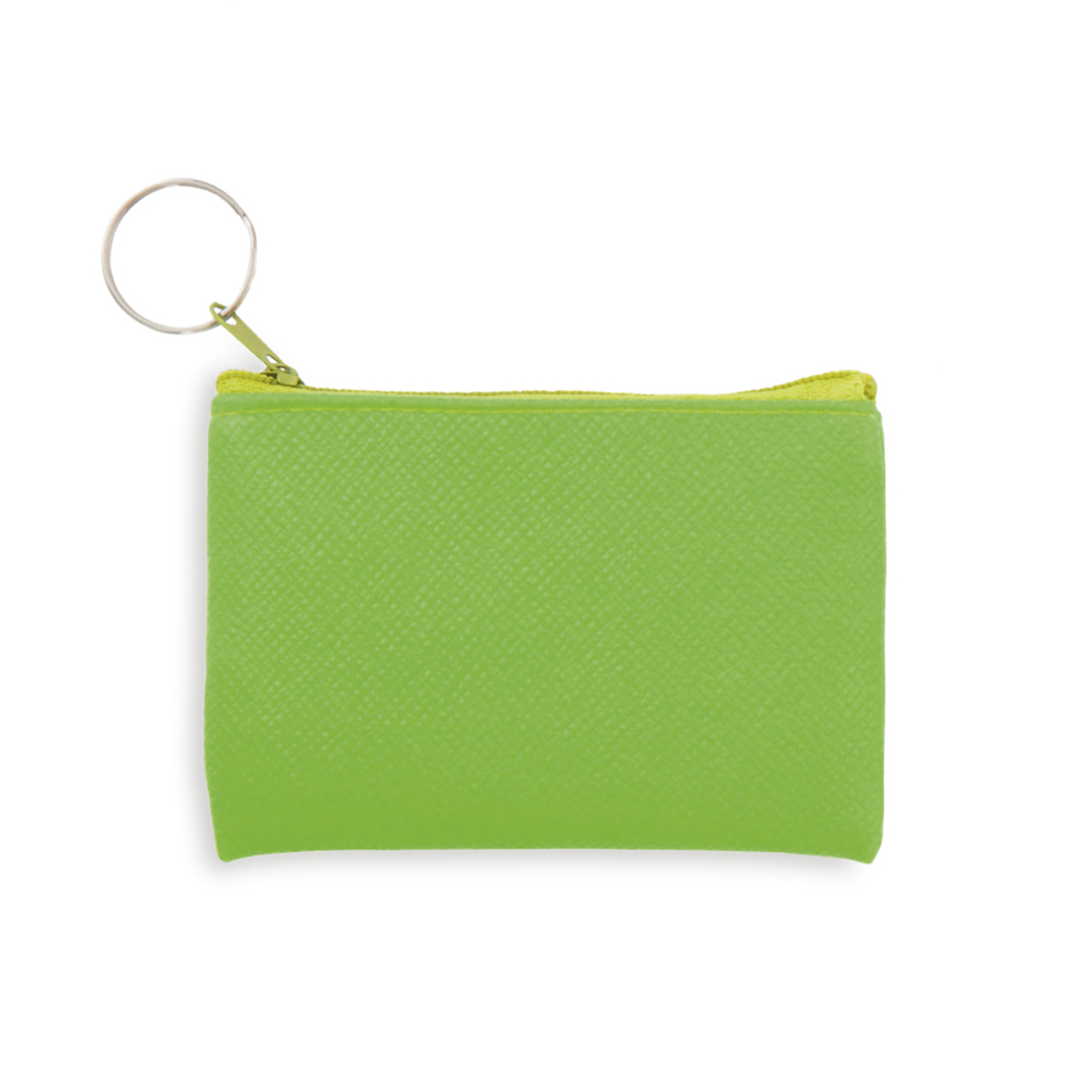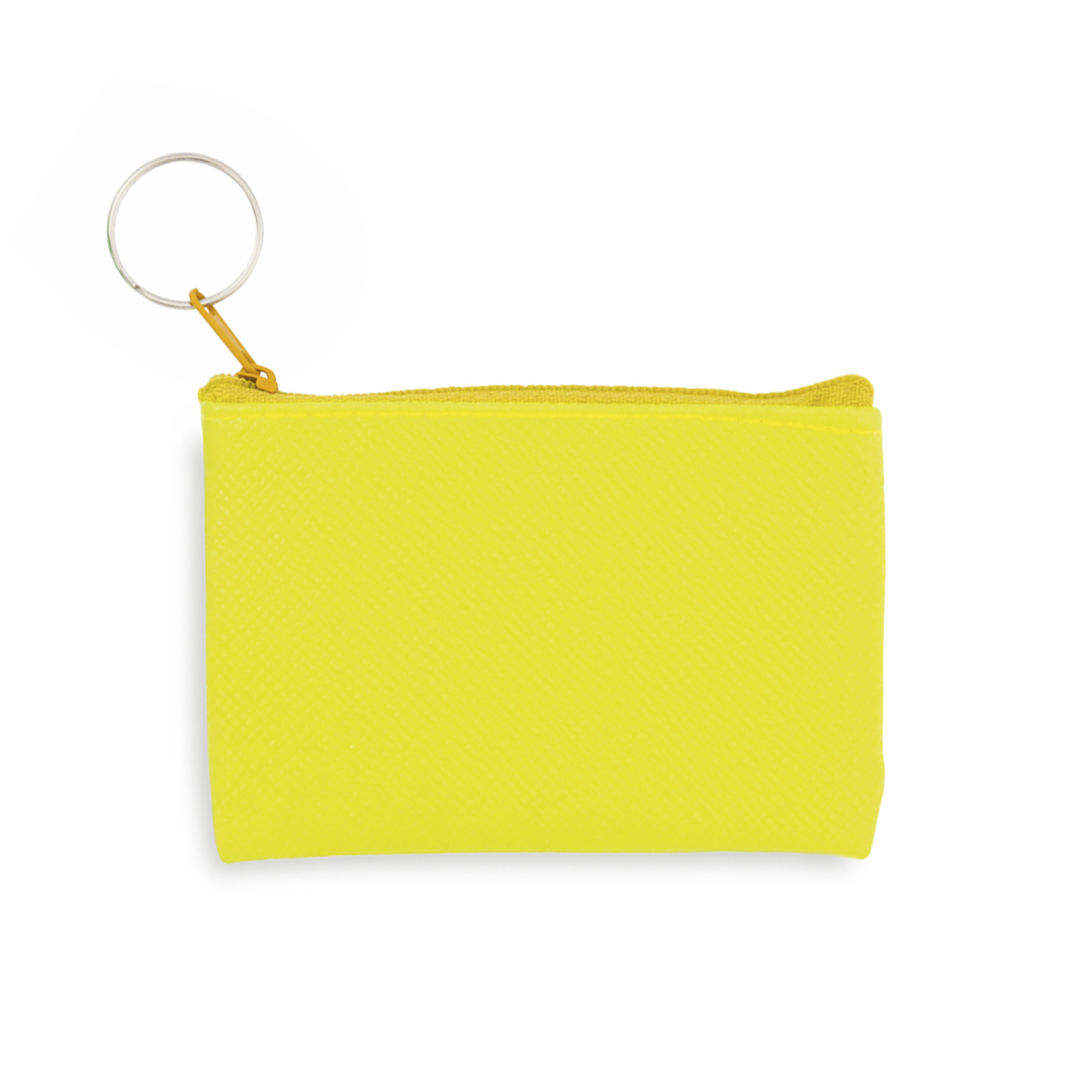 Monedero de diseño cuadrado con suave cuerpo acabado en PVC en variada gama de vivos colores fluorescentes. Compartimento principal con apertura de cremallera a juego con anilla llavero de transporte.