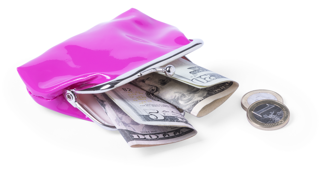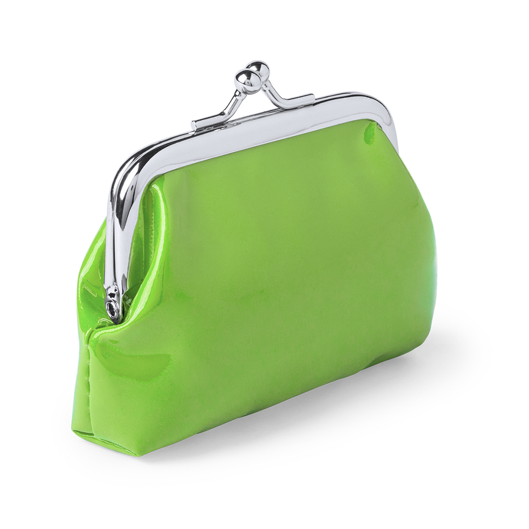 Monedero de alegre diseño con suave cuerpo acabado en PVC brillante en variada gama de vivos colores. Compartimento principal con cierre de clic metálico reforzado. Con Forro Interior