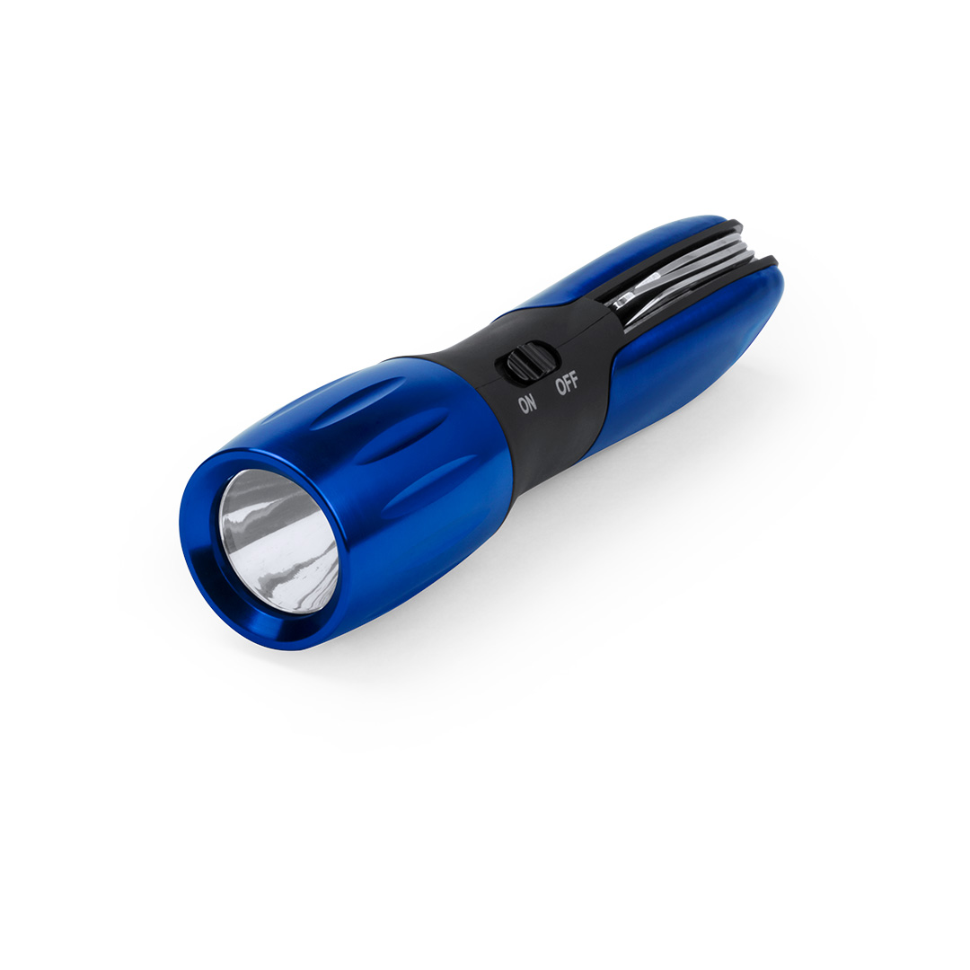 Multiherramienta con resistente cuerpo en aluminio de acabado anti deslizante en variada gama de colores metalizados. Con 9 funciones y linterna led integrada. Incluye cabezales destornilladores, navajas, llaves y abridores. Presentada en caja individual. 1 Led. 9 Funciones. 1 Pila AAA No Incluida