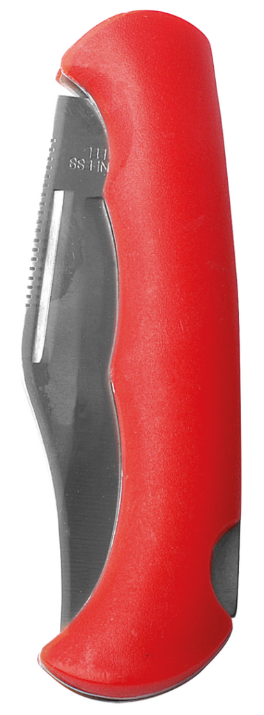 Navaja con hoja de acero inox y resistente empuñadura anti deslizante con bloqueo de seguridad. En variada gama de vivos colores y presentada en caja individual. Con Bloqueo