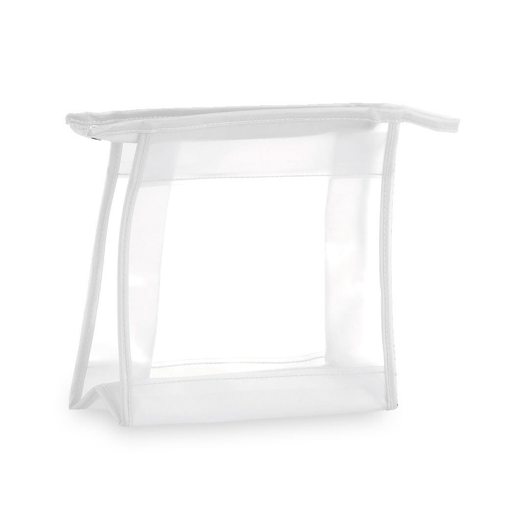 Neceser multiusos en resistente material PVC translúcido en vivos colores. Con ventana transparente y cierre de cremallera a juego.