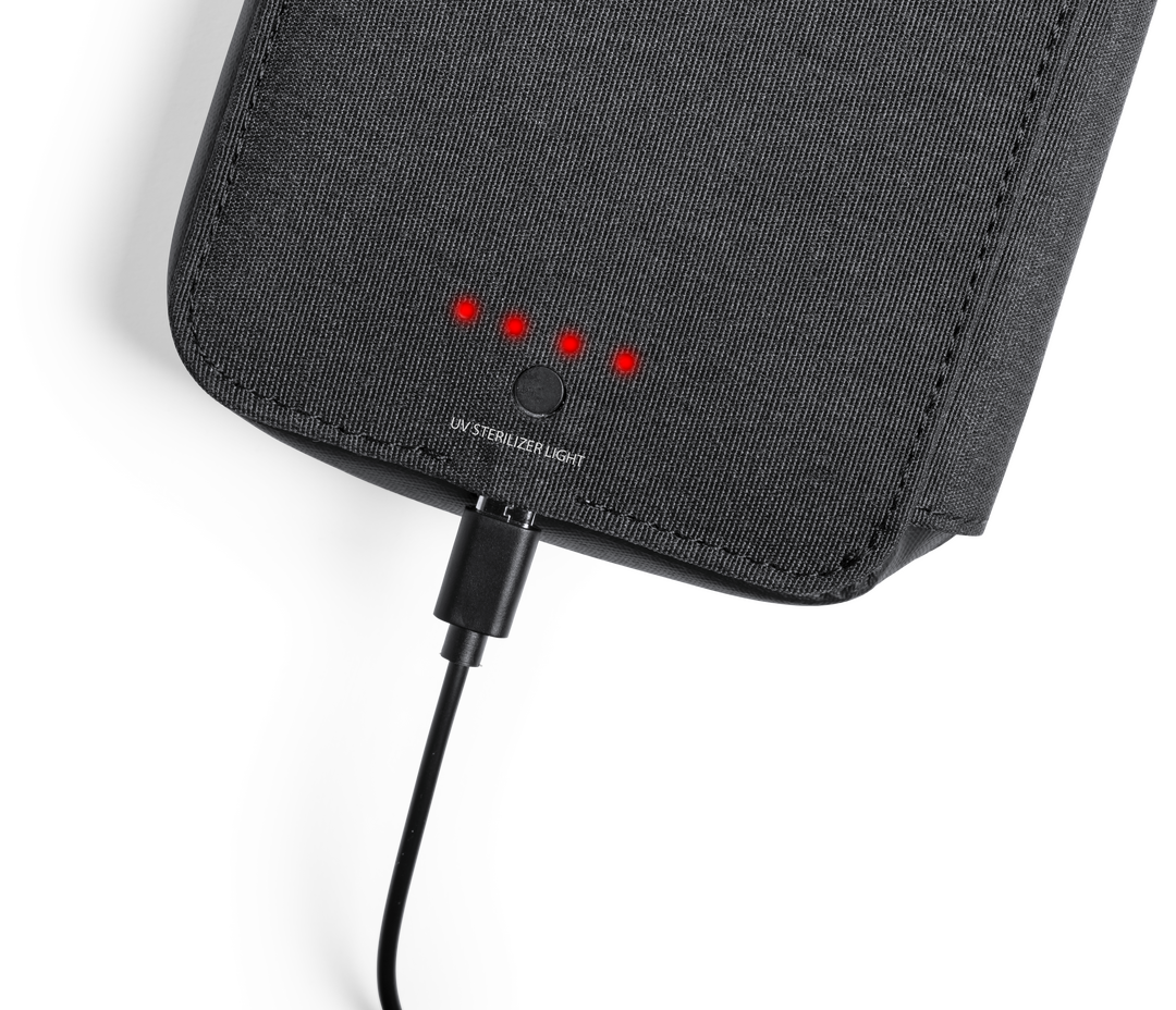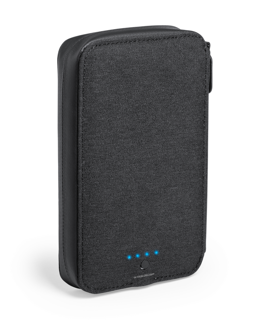 Organizador y esterilizador de luz ultravioleta tipo C, con protección RFID (Identificación por Radio Frecuencia) que mantiene seguros tus dispositivos de transmisión de identidad. Especialmente diseñado para la eliminación de microorganismos y bacterias Luz Ultravioleta. Protector RFID. Conexión USB. Cable Incluido