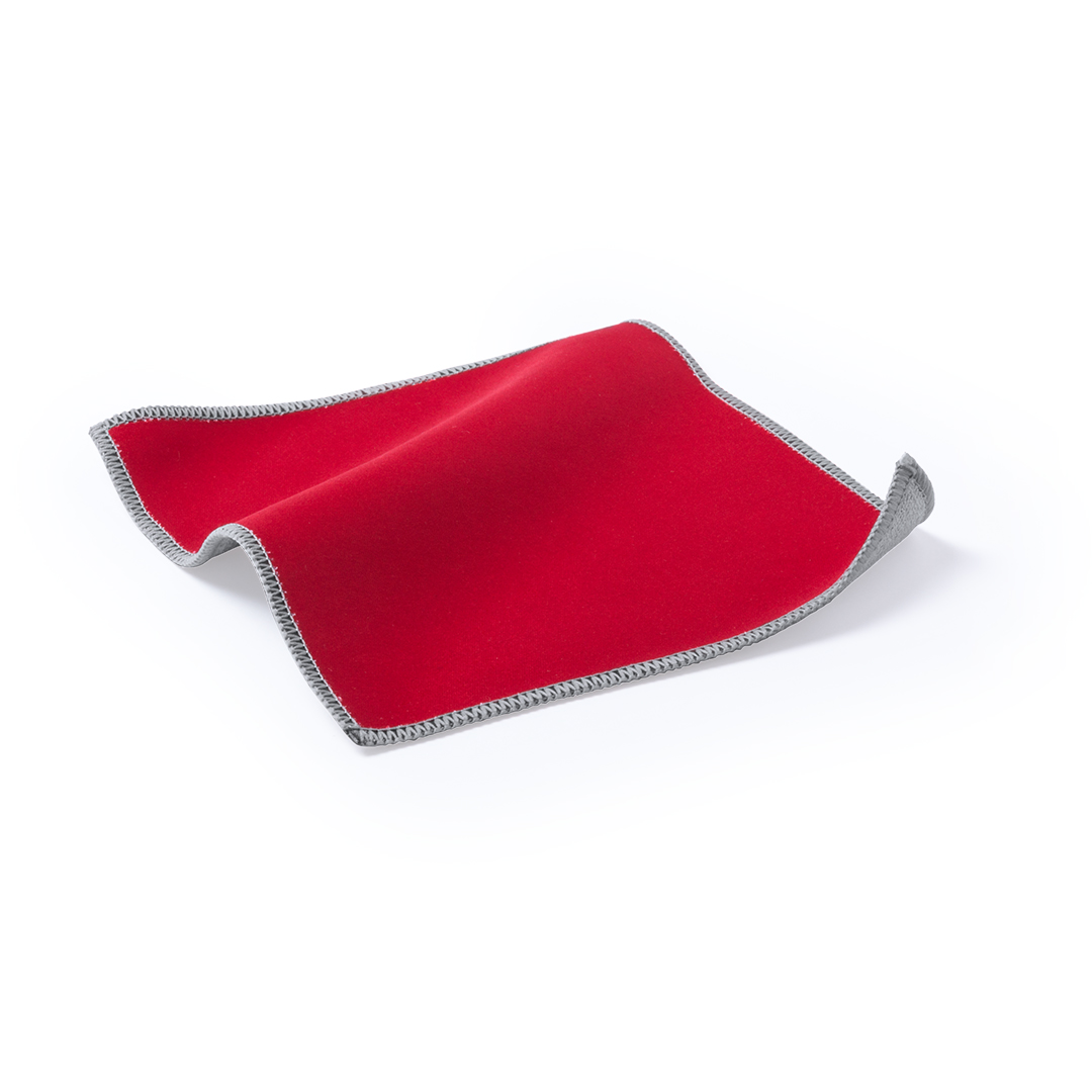 RojoPaño limpiador de microfibra en llamativos colores, especialmente diseñado para la limpieza de pantallas de dispositivos móviles y cualquier tipo de lente. Laterales y esquinas con pespunte de refuerzo.