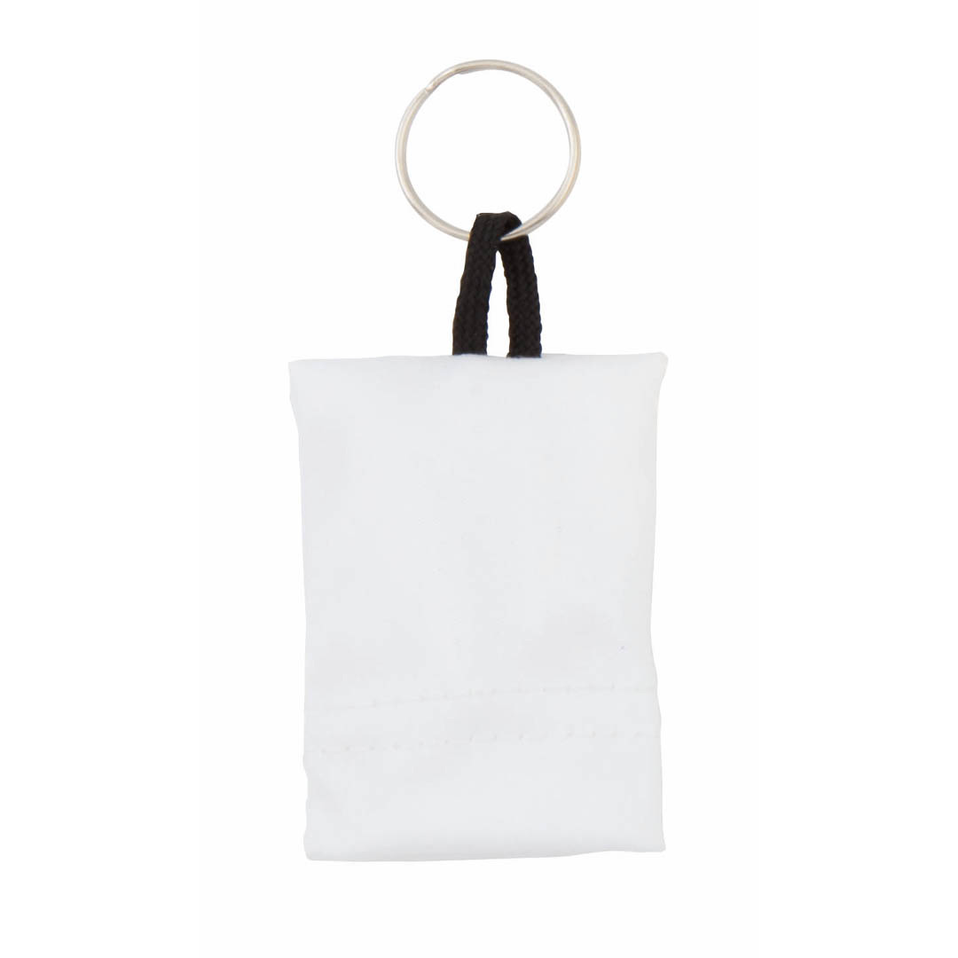 Paño limpiador llavero de microfibra con funda integrada en llamativos colores. Especialmente diseñado para la limpieza de pantallas de dispositivos móviles y cualquier tipo de lente. Laterales reforzados mediante corte de seguridad en zigzag.