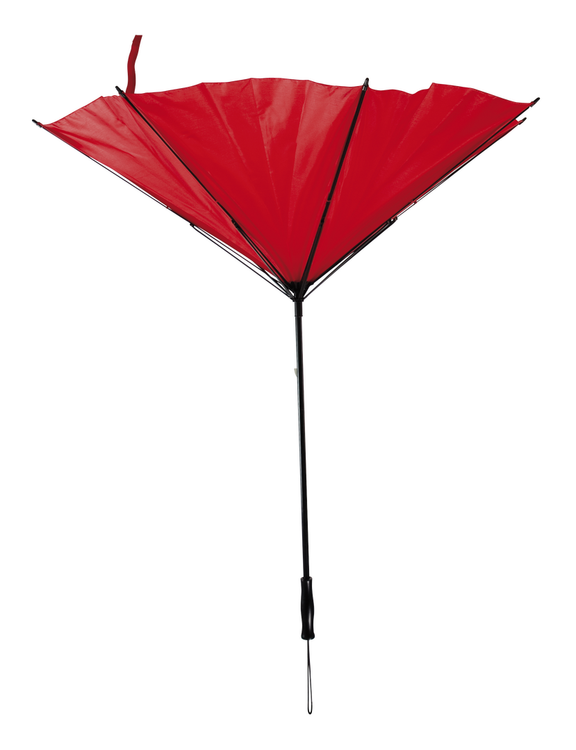 Paraguas de 8 paneles con sistema antiviento en variada gama de vivos colores. De 105cm de diámetro, con apertura manual y en resistente material poliéster. Con varillas metálicas en color negro, cierre de velcro y suave mango ergonómico con cinta de tran Sistema Antiviento