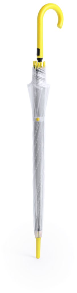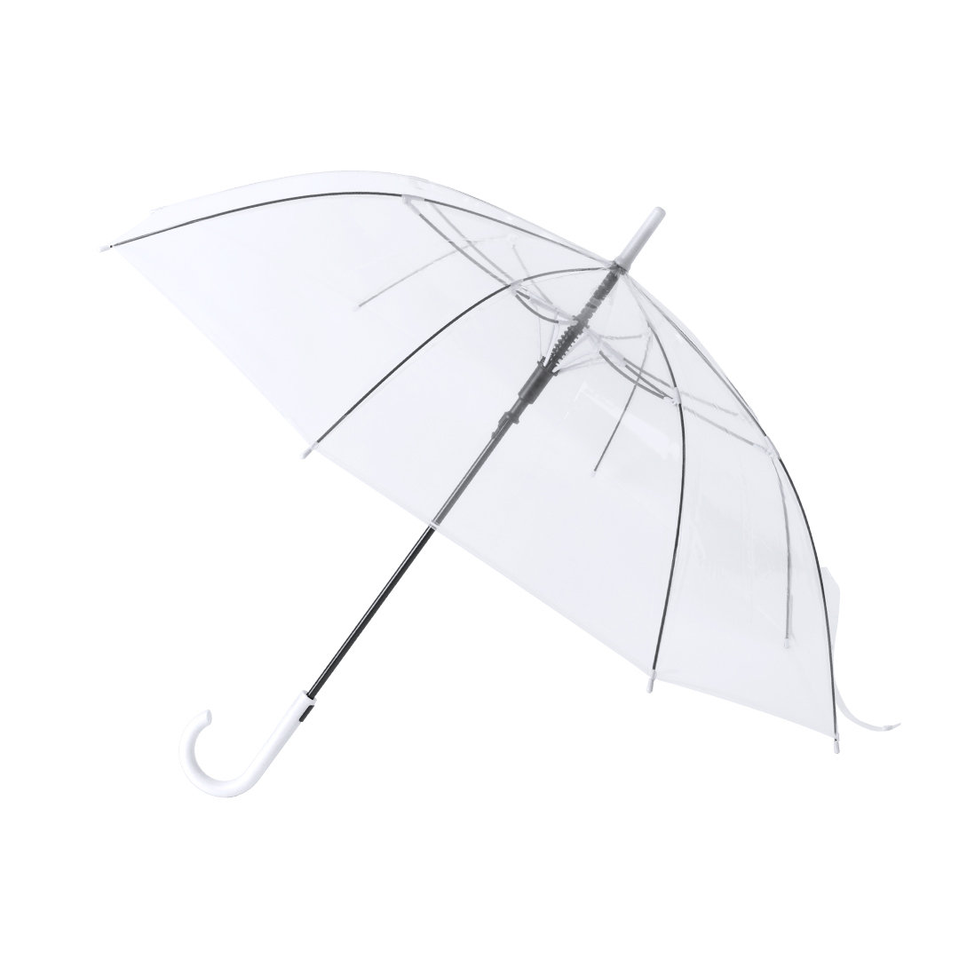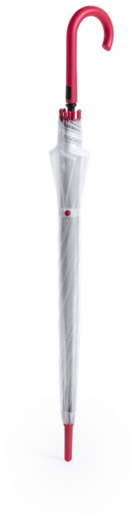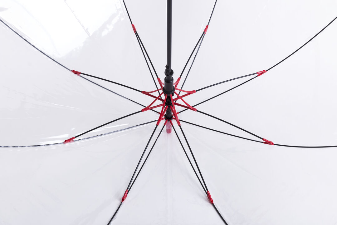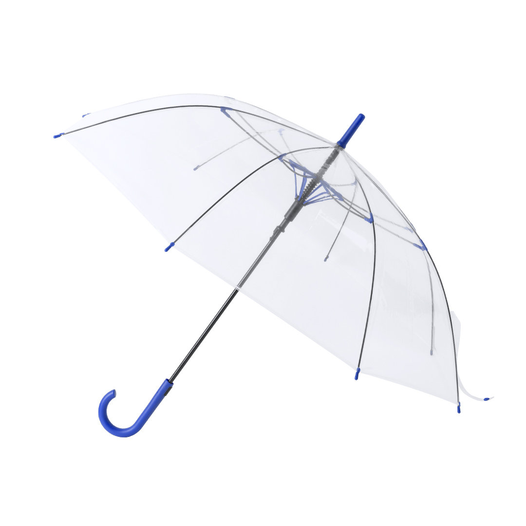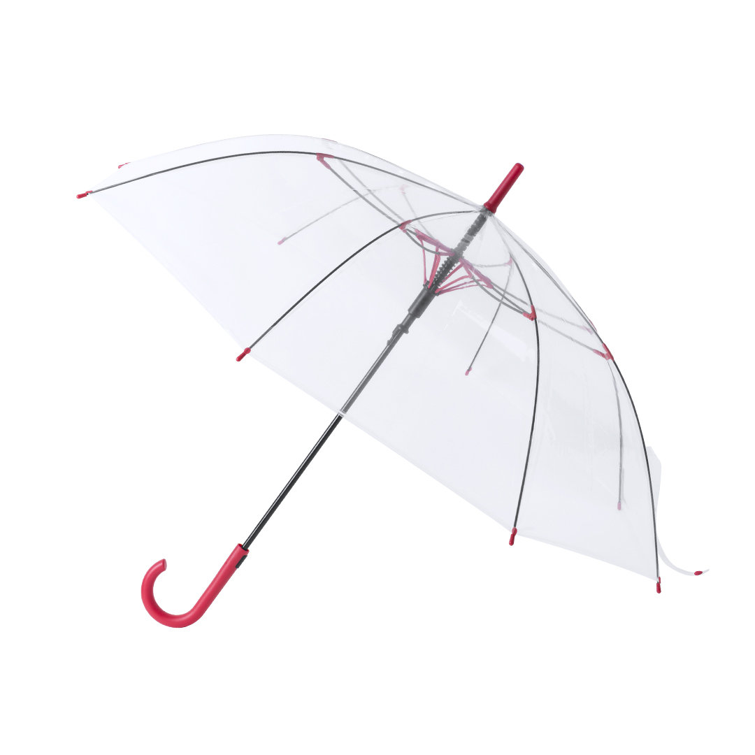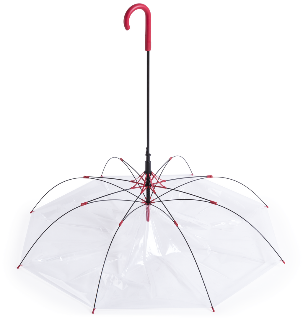 Paraguas de 8 paneles totalmente transparente, con detalles y mango en variada gama de colores. De 105cm de diámetro, con apertura automática, sistema antiviento y en resistente material POE. Con resistentes varillas de fibra en color negro, cierre de cor Automático. Sistema Antiviento
