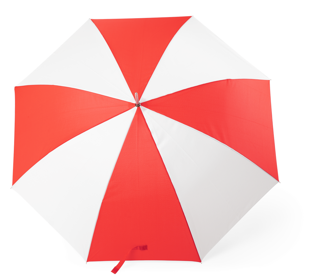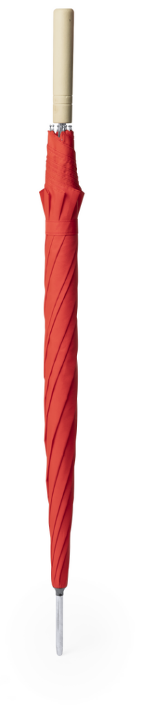 RojoParaguas de 8 paneles en nylon 190T, de 105 cm de diámetro. Apertura automática, con varillas metálicas en color cromado y mango de madera. Disponible en variada gama de colores planos o combinaciones con blanco. Automático. Mango Madera
