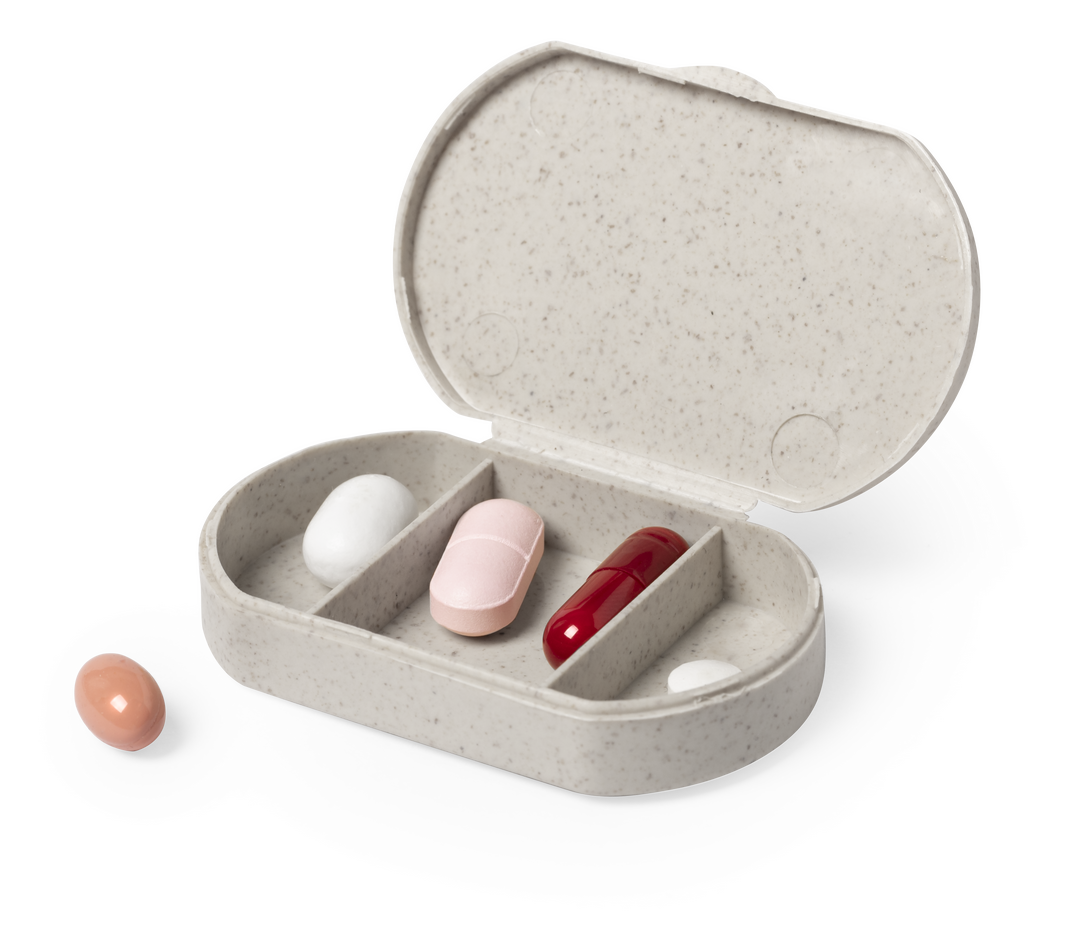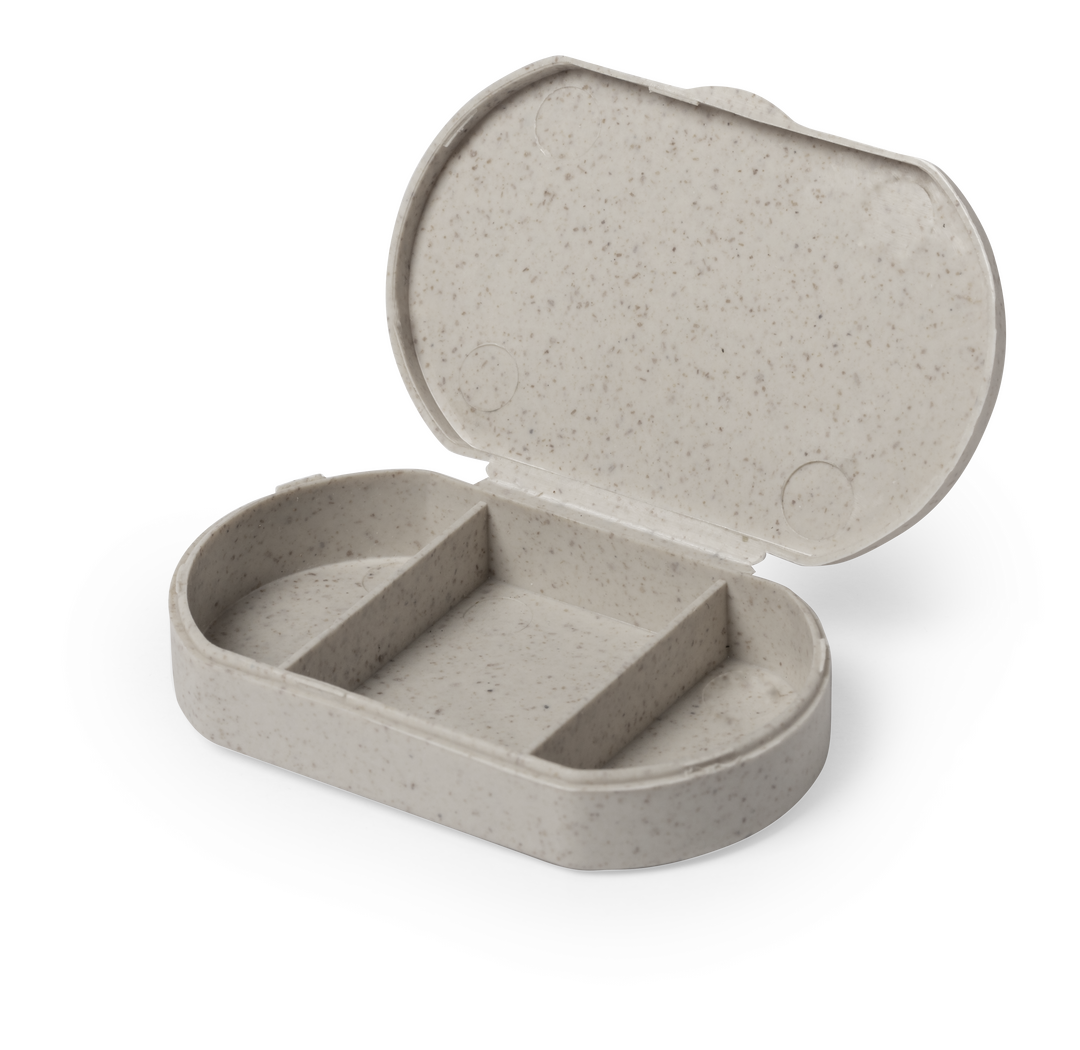 Pastillero en línea nature, fabricado en fibra de bambú. Con 3 compartimentos y cierre de seguridad. 3 Compartimentos