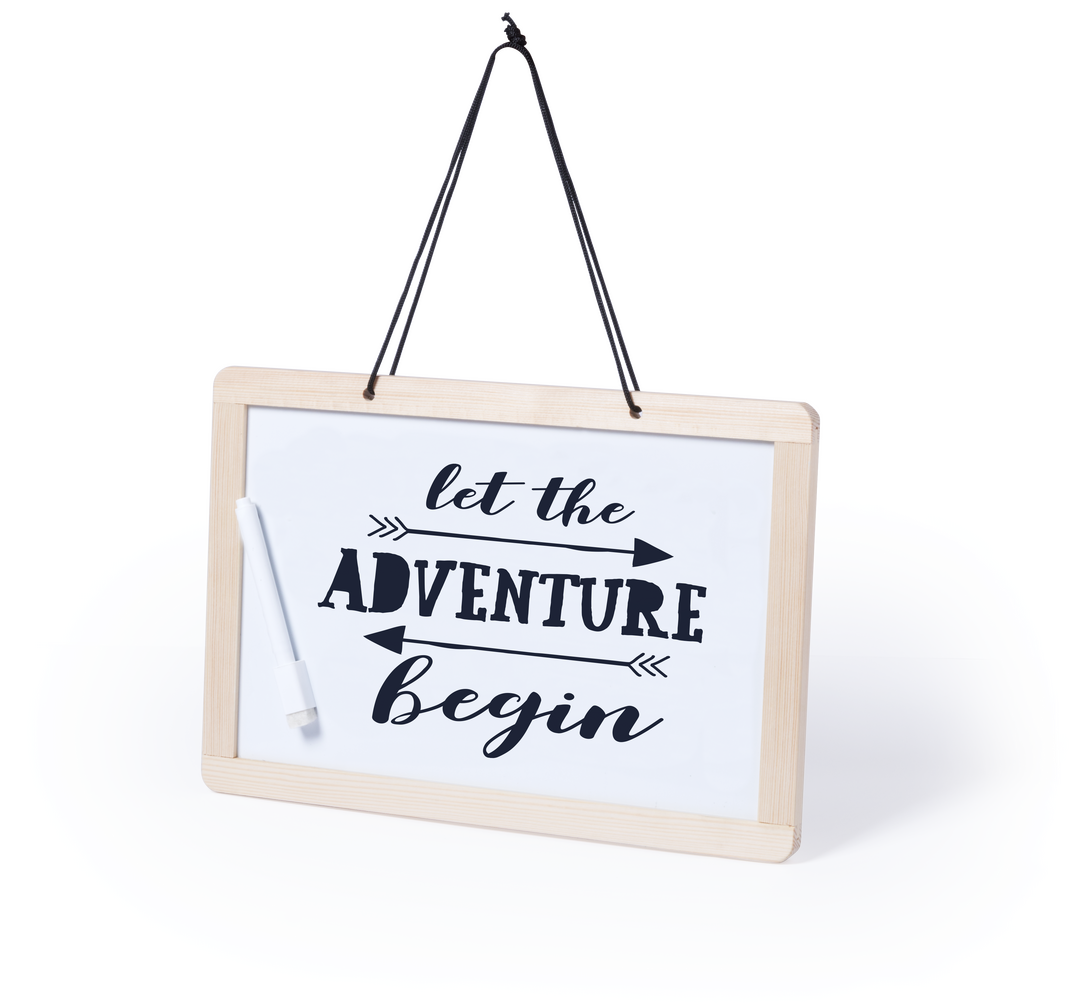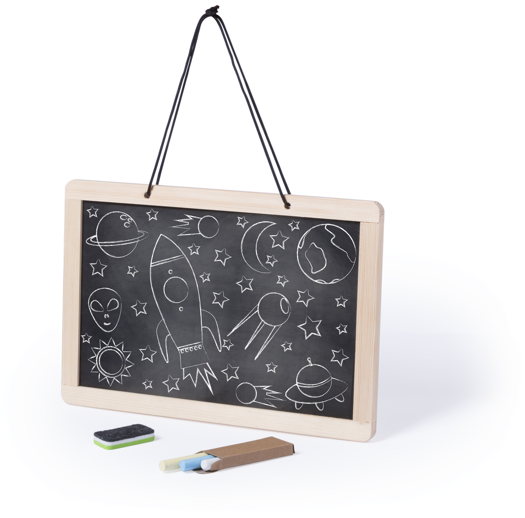 Pizarra para colgar de doble cara. Tradicional pizarra de tiza en una cara con 3 tizas incluidas + pizarra para rotulador en la otra cara -rotulador incluido-. Con borrador de doble cara para tiza o rotulador. 3 Tizas, Rotulador y Borrador Incluidos