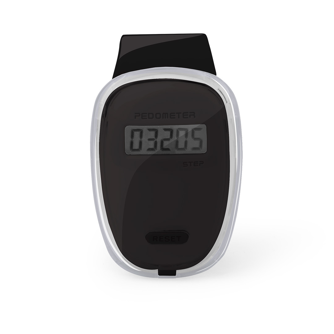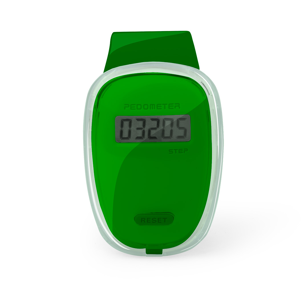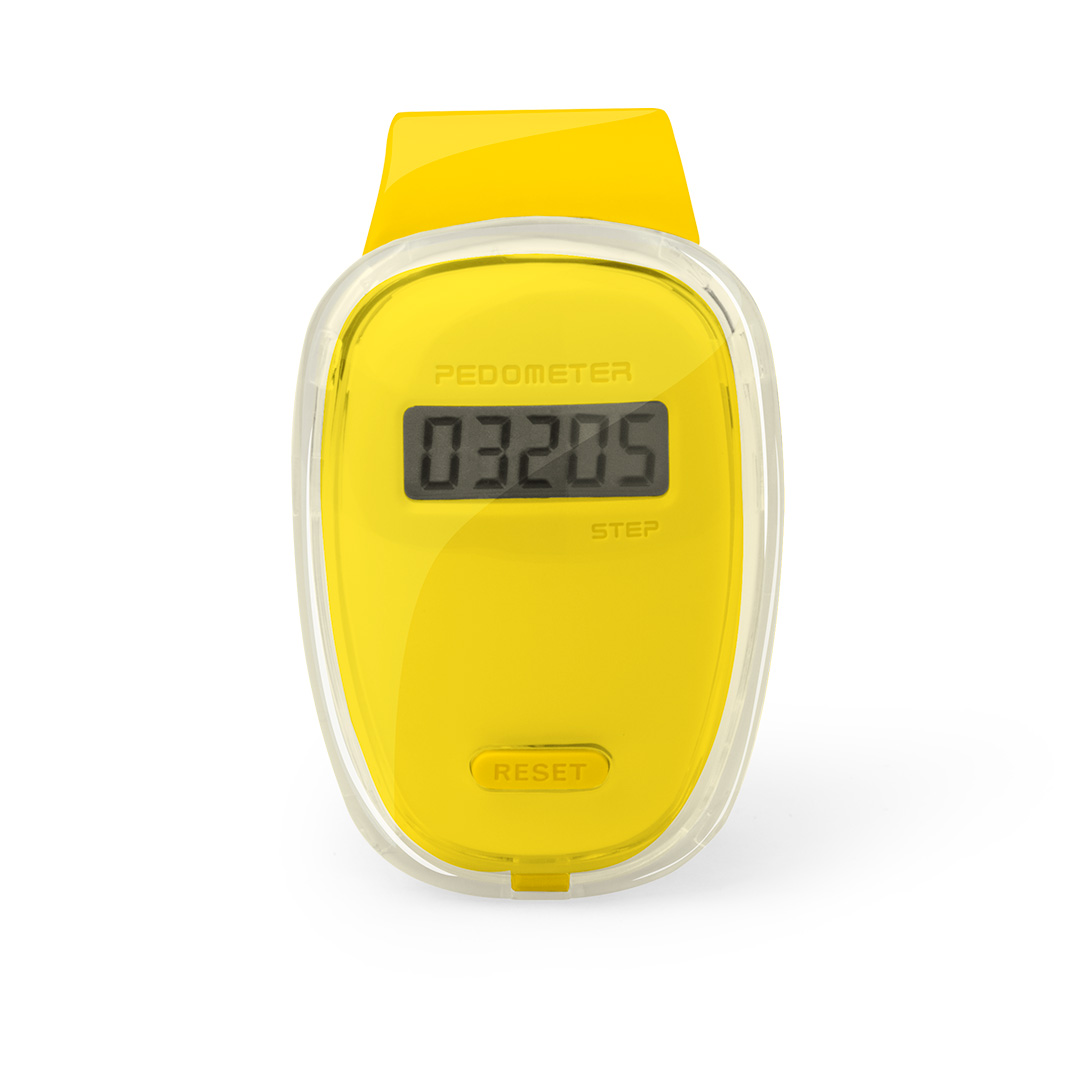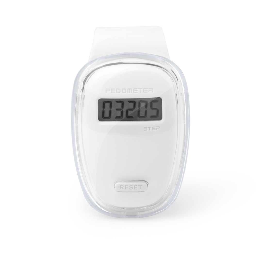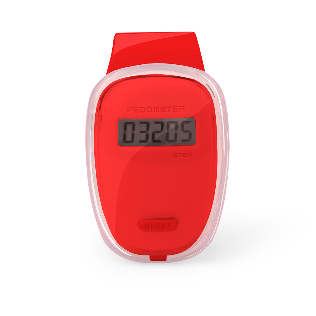 Práctico podómetro contador de pasos en original diseño con suave cuerpo transparente, accesorios en vivos tonos y pinza de fijación. Pila de botón incluida con film protector y presentado en caja individual. Calcula Pasos. Pila Botón Incluida