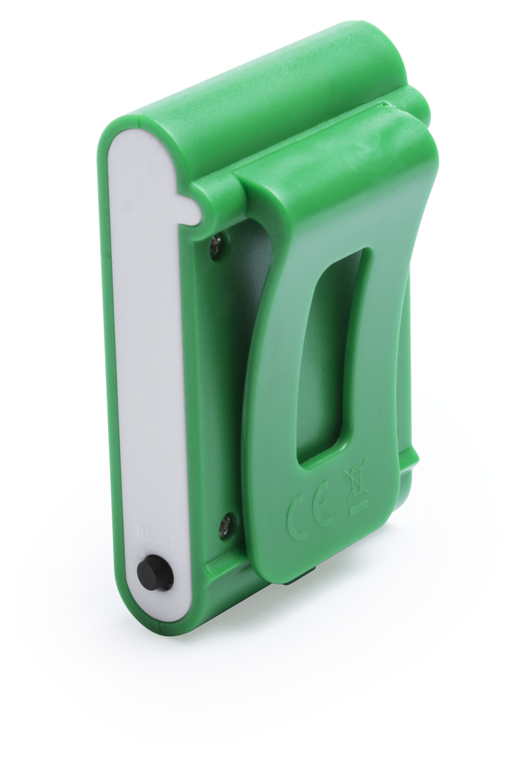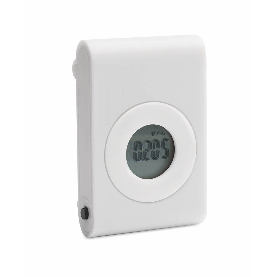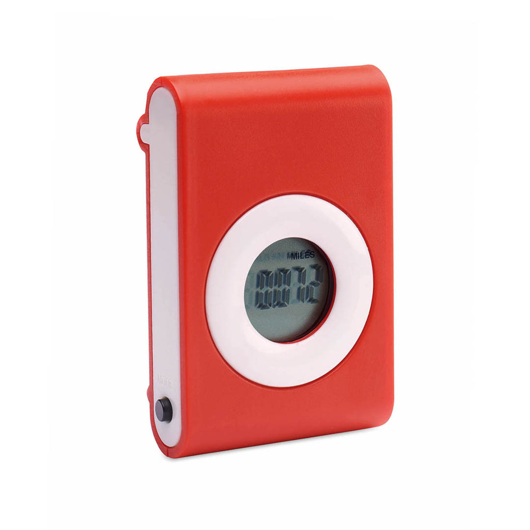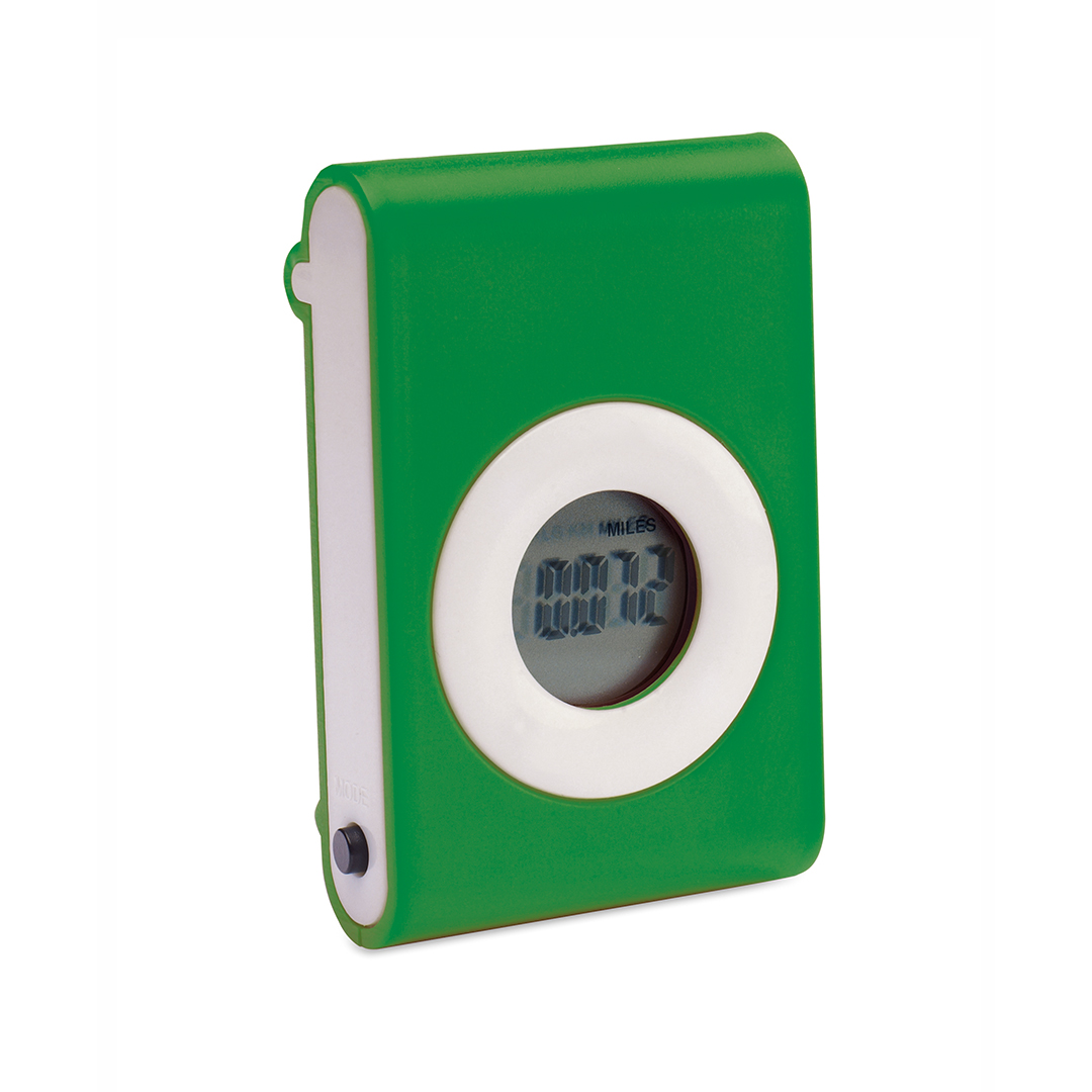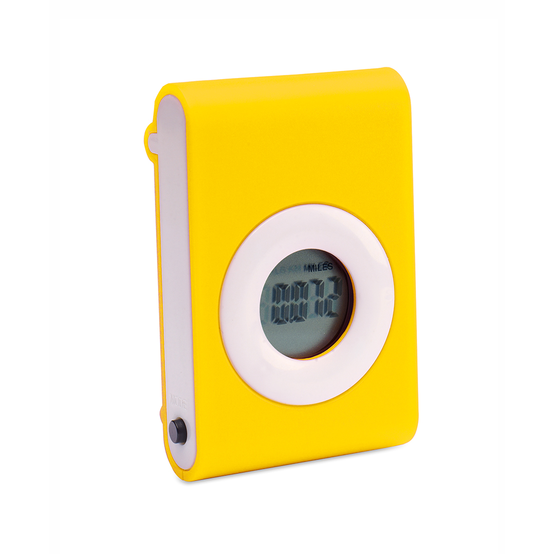 Práctico podómetro contador e pasos en original diseño bicolor con suave cuerpo en vivos tonos y pinza de fijación. Configurable con funciones: pasos, distancia recorrida y calorías consumidas. Pila de botón incluida con film protector y presentado en caj Calcula Pasos, Distancia Recorrida y Calorías Consumidas. Pila Botón Incluida