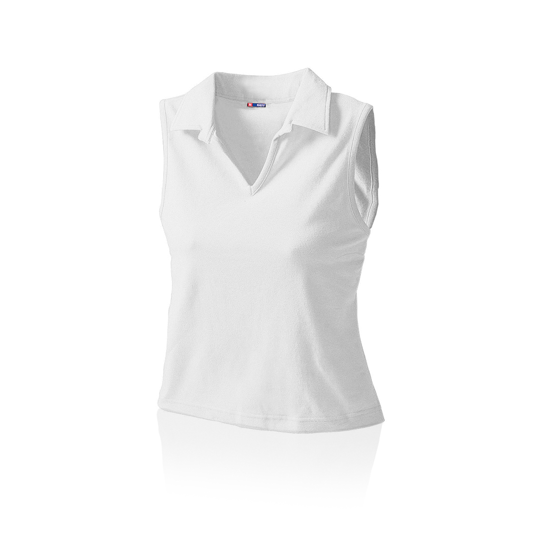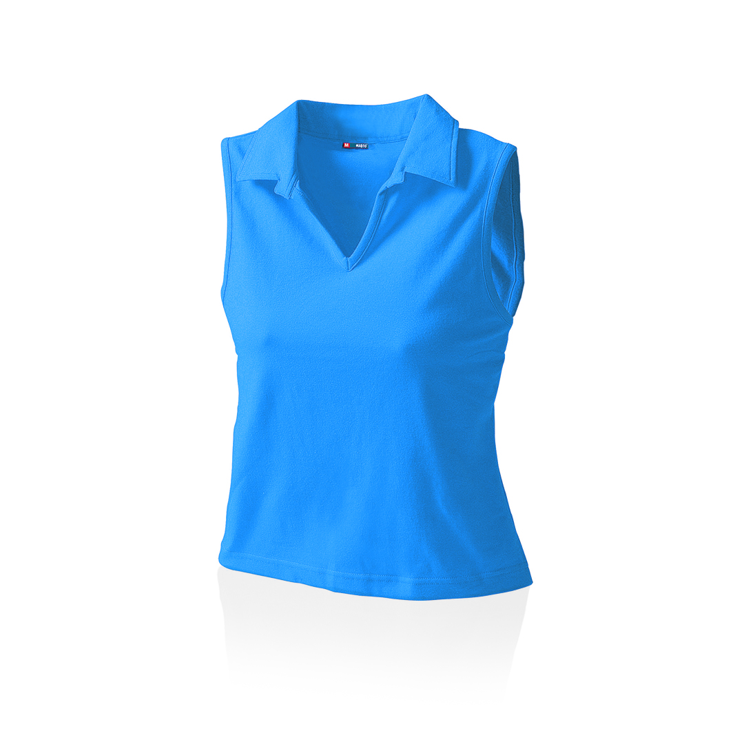 Polo sin mangas para chica en combinación de materiales algodón y lycra de 215g/m2. Disponible en variada gama de colores y en tallas M, L. Tallas: M, L