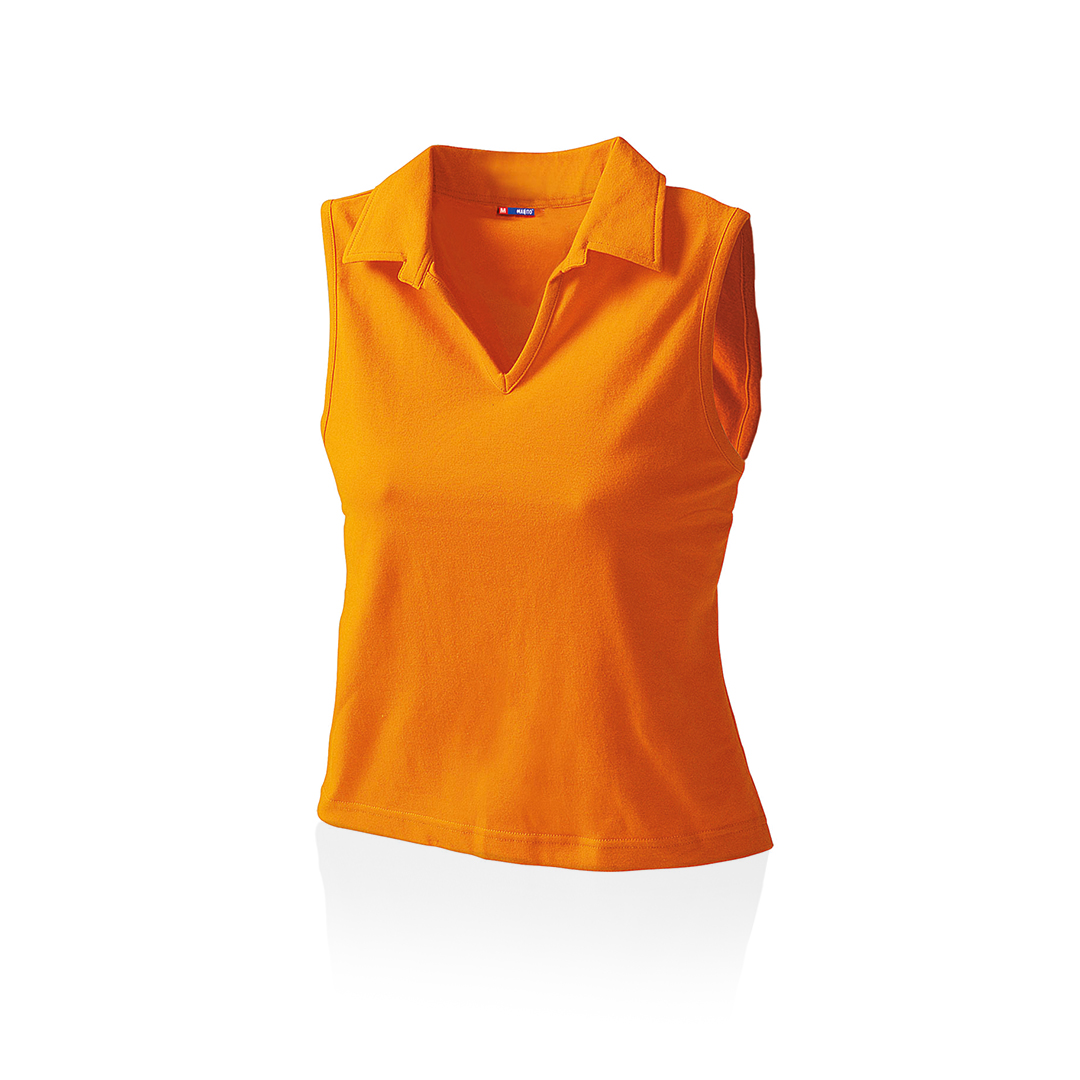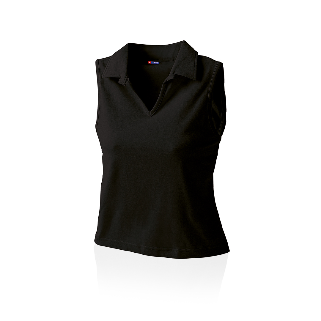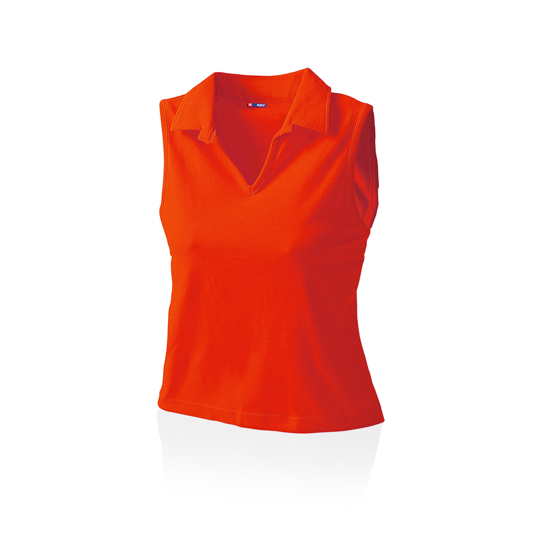 RojoPolo sin mangas para chica en combinación de materiales algodón y lycra de 215g/m2. Disponible en variada gama de colores y en tallas M, L. Tallas: M, L