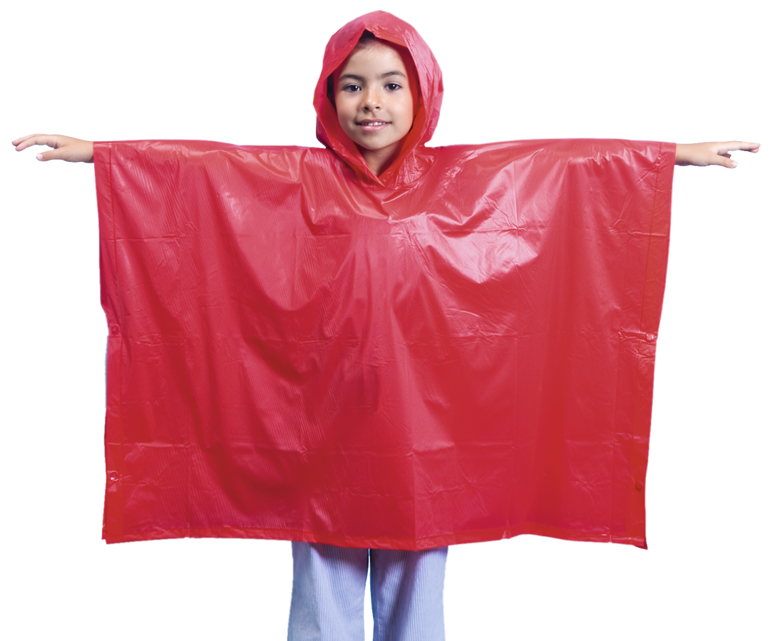 Poncho en PVC en divertida gama de vivos colores. Con corchetes de cierre en los laterales y acabado termosellado. Talla única infantil en medidas 90x64cm. Talla Única. Niño. 90 x 64 cm