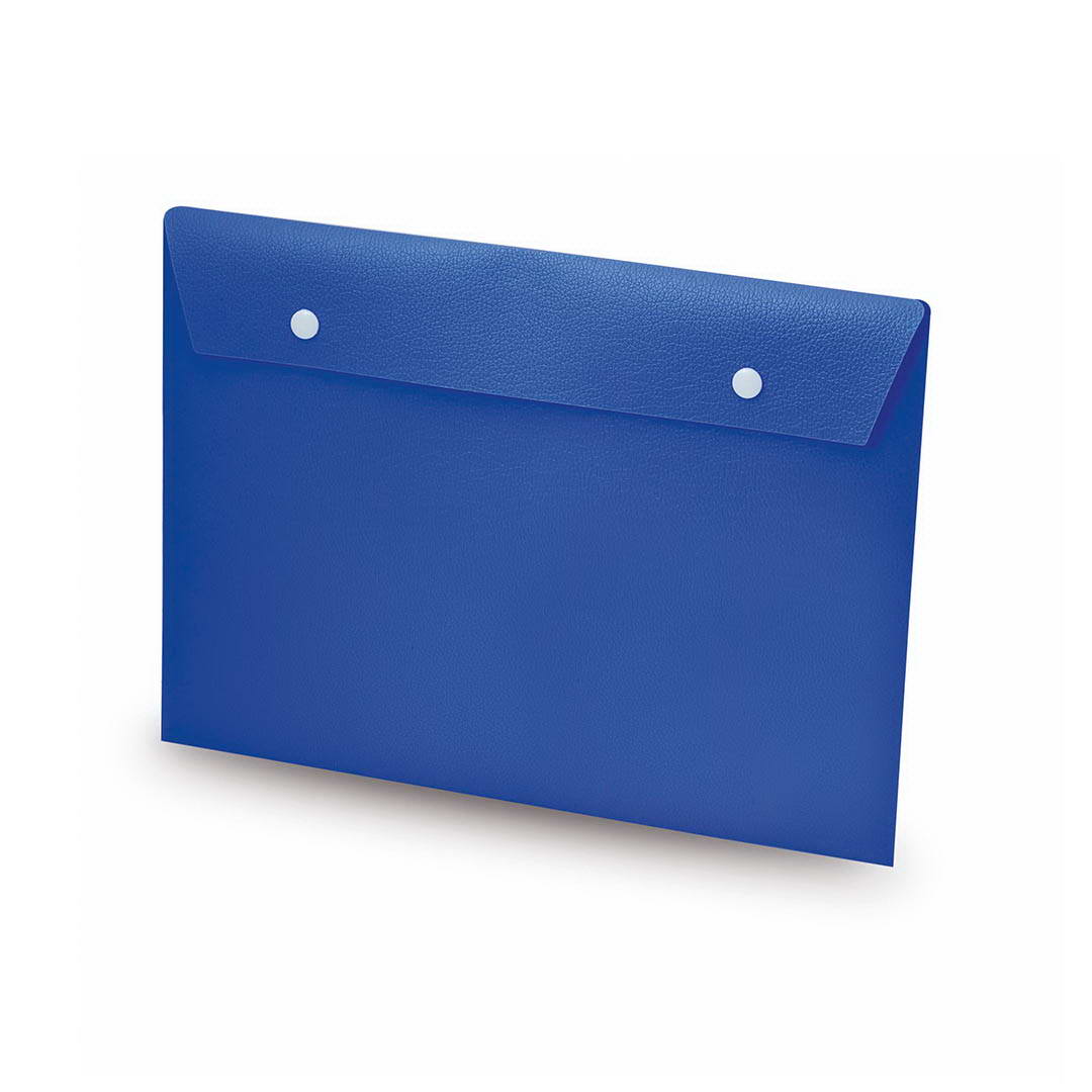 Portadocumentos tamaño A4 en resistente material PP, en vivos colores y con solapa de doble cierre de corchete.