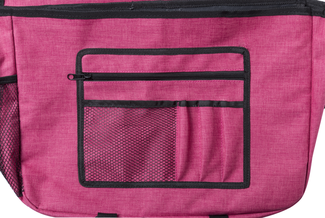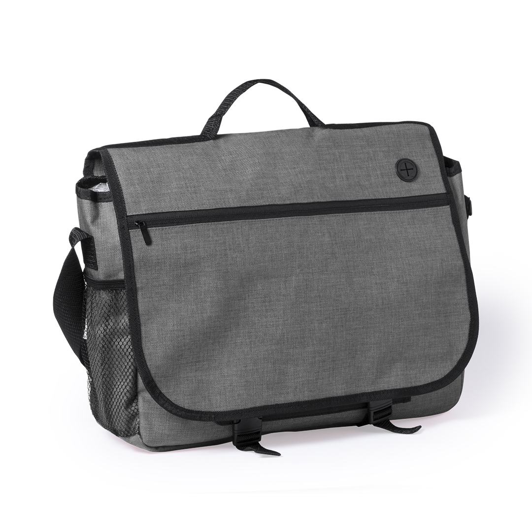 Portadocumentos con solapa de cierre clic ajustable en poliéster 600D, de diseño bicolor en vivos tonos. Con salida de auriculares, bolsillo de cremallera en solapa y bolsillo de redecilla lateral. Con asa reforzada, cinta bandolera ajustable y compartime