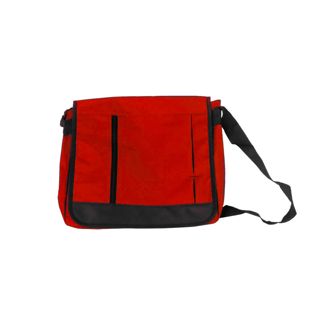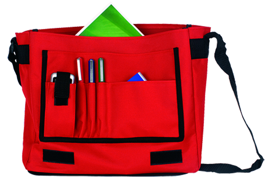 Portadocumentos con solapa de cierre de velcro en poliéster 600D con elegante ribete en color negro y original bolsillo frontal en vertical. Con cinta bandolera ajustable y compartimentos interiores con fundas para bolígrafos y smartphone.