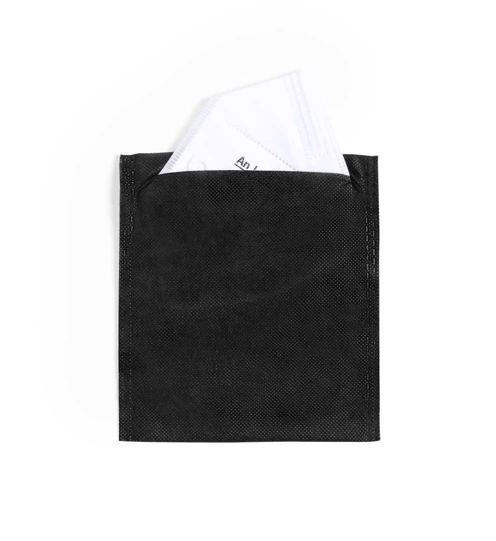 Portamascarillas en non-woven de acabado termosellado. De tamaño compacto, ideal para el transporte y la protección de todo tipo de mascarillas y para la creación de sets con diversos productos higiénicos. Reutilizable, transpirable y lavable.