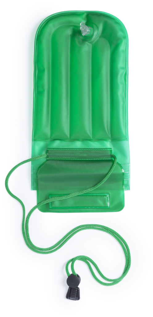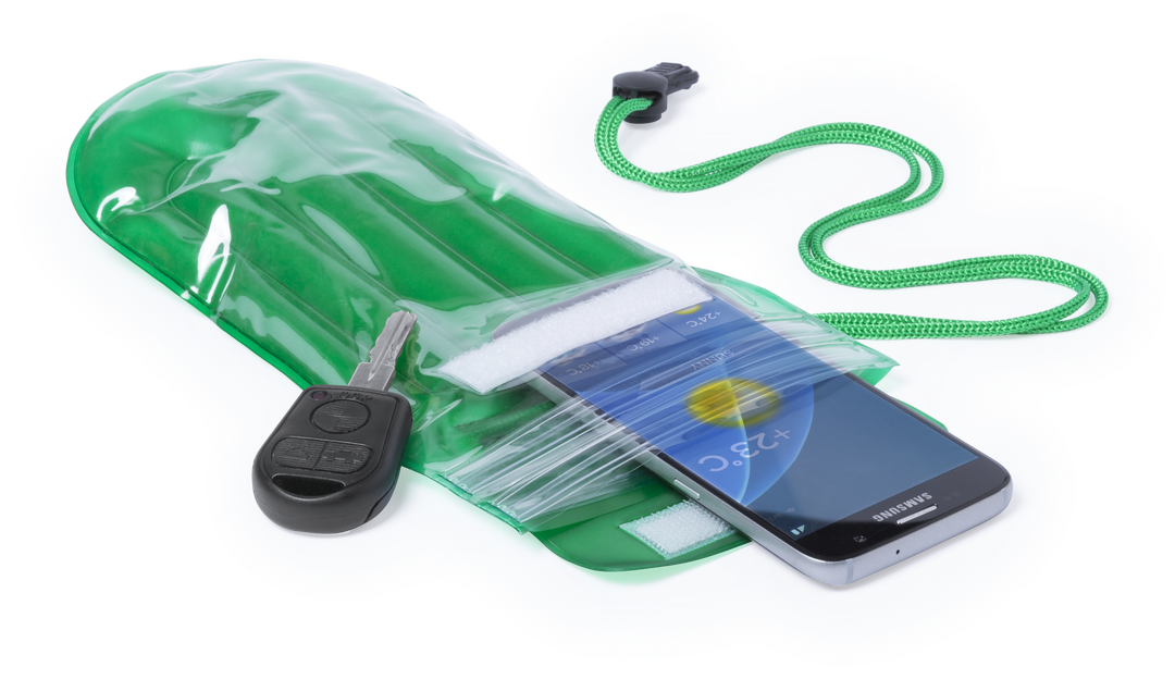 Práctico portatodo impermeable e inflable tamaño XL. En PVC con función táctil y doble sistema de seguridad para preservar la estanqueidad. Con zona de marcaje frontal a juego con el cordón de transporte -con accesorio de ajuste-. Impermeable. Pantalla Táctil