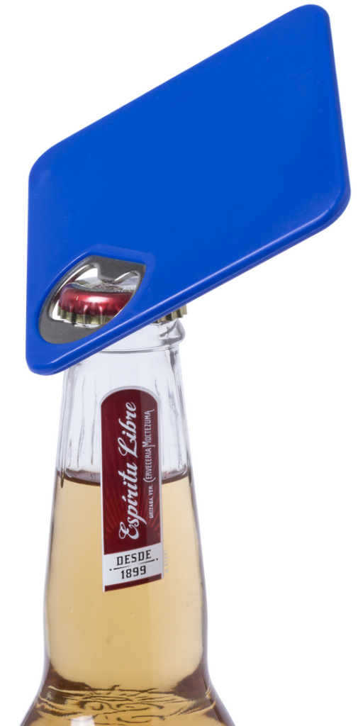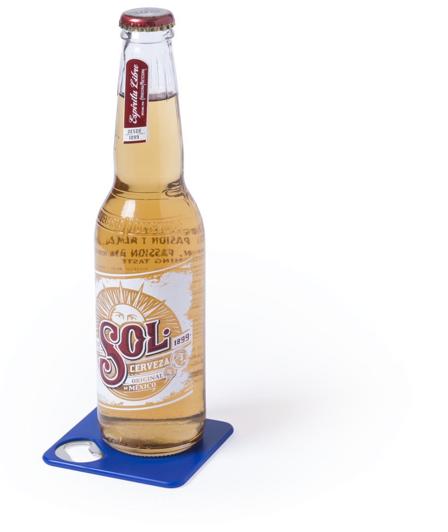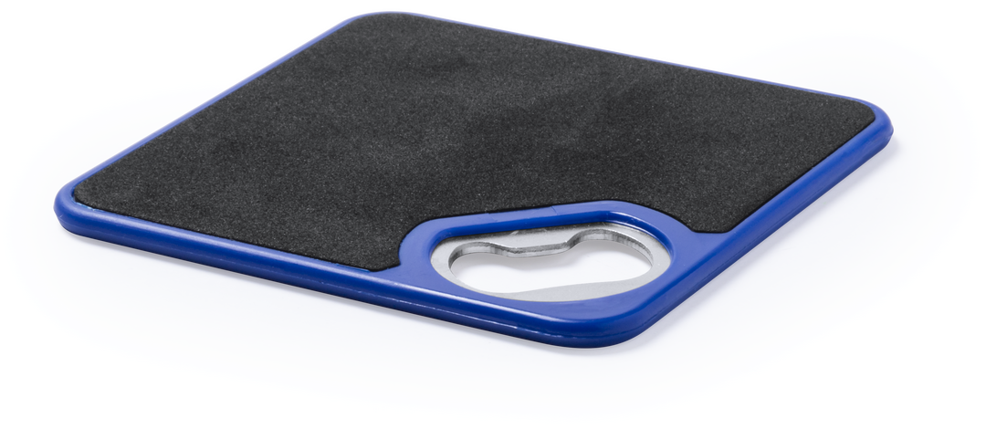 Original posavasos con abridor metálico integrado en variada gama de vivos colores. Con superficie anti deslizante en la base.