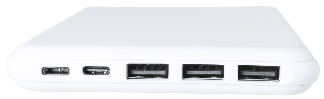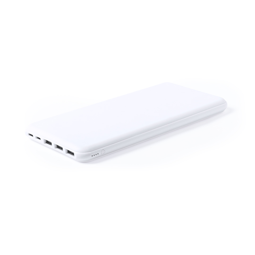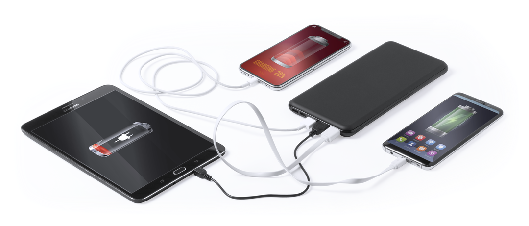 Batería auxiliar externa de gran capacidad de carga -20.000 mAh- con función carga rápida. Conexión Tipo-C de entrada/salida de corriente y salida USB triple. Con capacidad de carga simultánea de hasta cuatro dispositivos y 3 conexiones para entrada de co 20000 mAh. Carga Rápida. 3 Salidas USB y 1 Tipo C. Entradas Micro USB, Tipo C y Lightning. Cable No Incluido