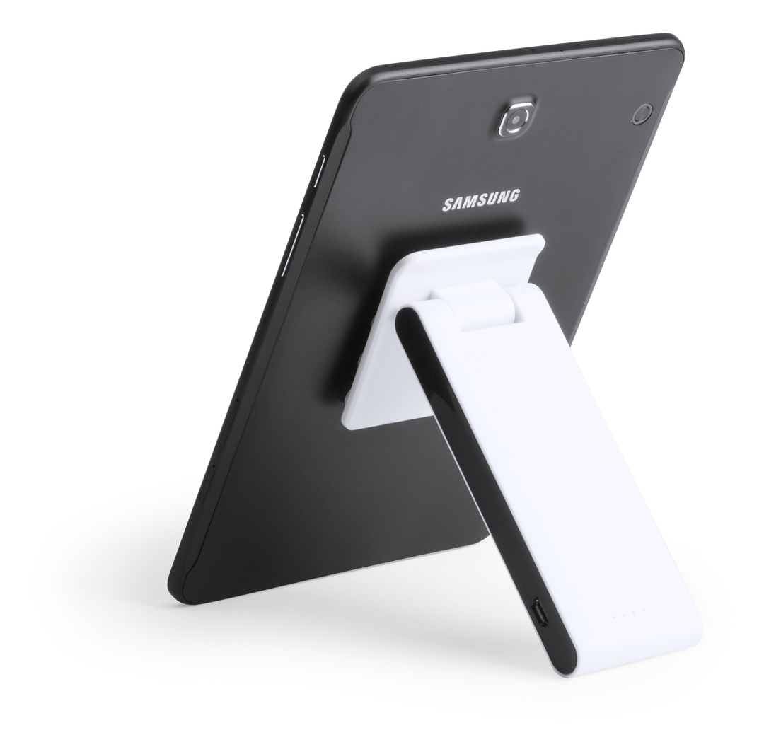 Batería auxiliar externa de gran capacidad de carga -4.000 mAh- convertible en soporte de móvil. Con LED indicadores de estado de carga y cable micro USB. Amplia superficie de marcaje y presentada en atractiva caja de diseño. Las capacidades mostradas en 4000 mAh. 1 Salida USB. Entrada Micro USB. Cable Incluido
