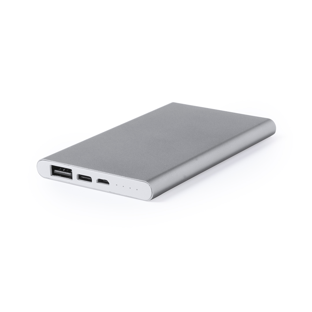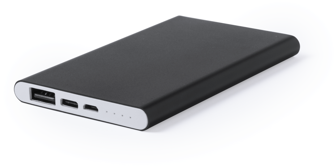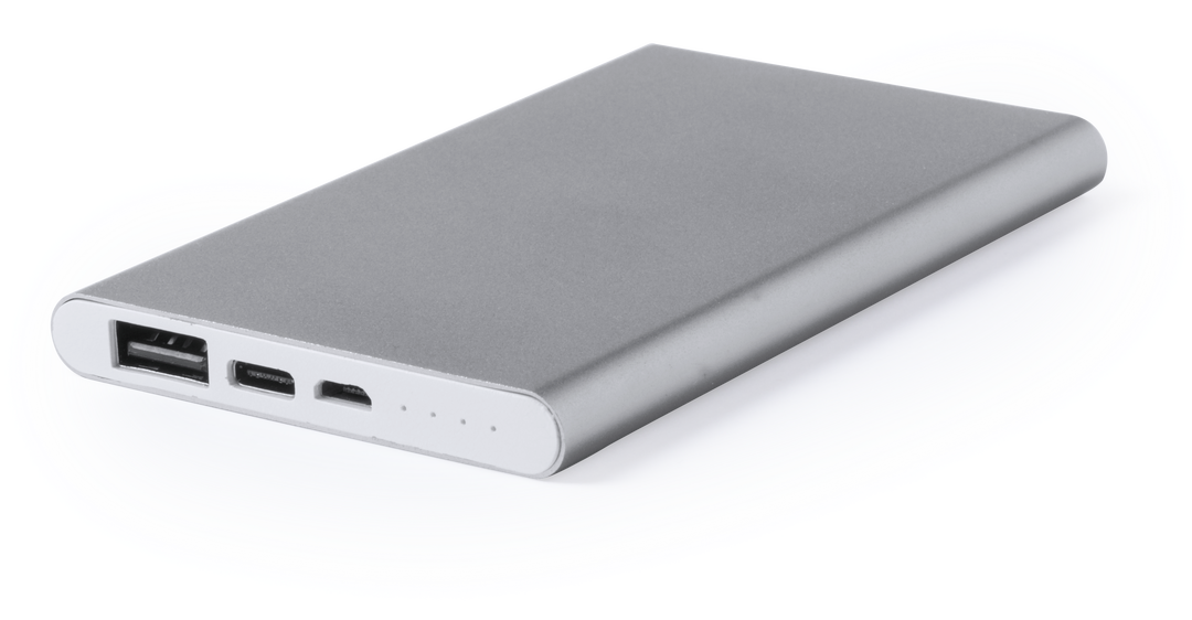 Batería auxiliar externa de gran capacidad de carga -4.000 mAh- con cuerpo acabado en resistente aluminio. Con conexiones para salida de corriente micro USB y Tipo-C. Ledes indicadores de estado de carga, diseño curvado extraplano y amplia superficie de m 4000 mAh. 1 Salida USB. Entrada Micro USB y Tipo C. Cable No Incluido