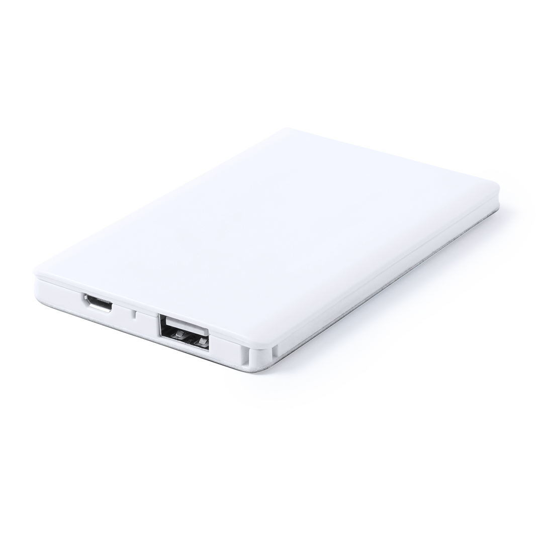 Batería auxiliar externa extraplana de 2.000 mAh de capacidad de carga. Indicador led de estado de carga, cable micro USB incluido y amplia superficie de marcaje, especialmente indicada para marcaje digital. Presentada en atractiva caja de diseño. Las cap 2000 mAh. 1 Salida USB. Entrada Micro USB. Cable Incluido
