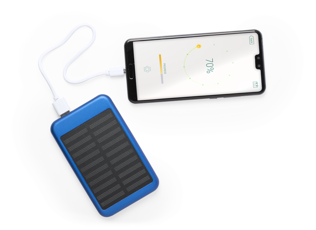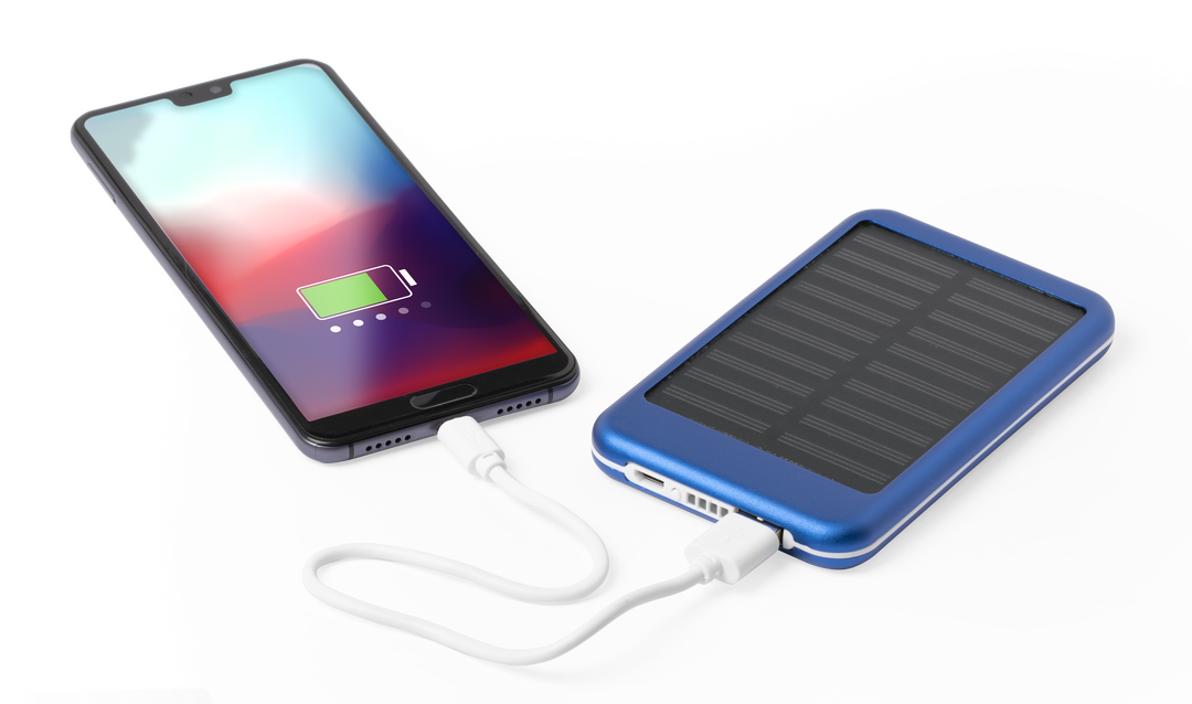 Batería auxiliar externa de recarga solar y de gran capacidad de carga -4.000 mAh-. En resistente aluminio, con salida USB y cable micro USB incluido. Disponible en variada gama de colores. Las capacidades mostradas en todas nuestras baterías auxiliares e 4000 mAh. Salida USB. Entrada Micro USB. Cable Incluido