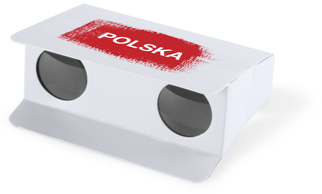 Originales prismáticos plegables con cuerpo de cartón de acabado brillante en variados colores.