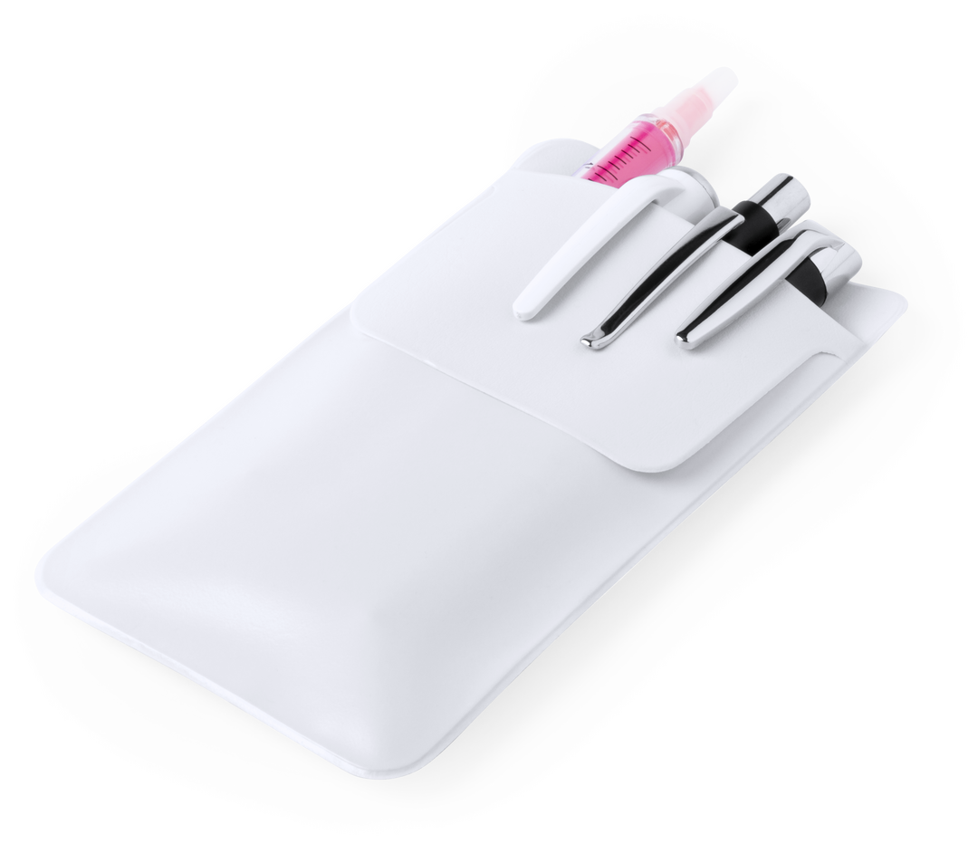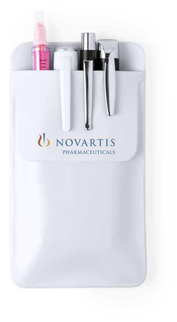 Protector de bolsillo para guardar bolígrafos y otros utensilios. En resistente PVC de acabado termosellado, con solapa para fácil impresión.