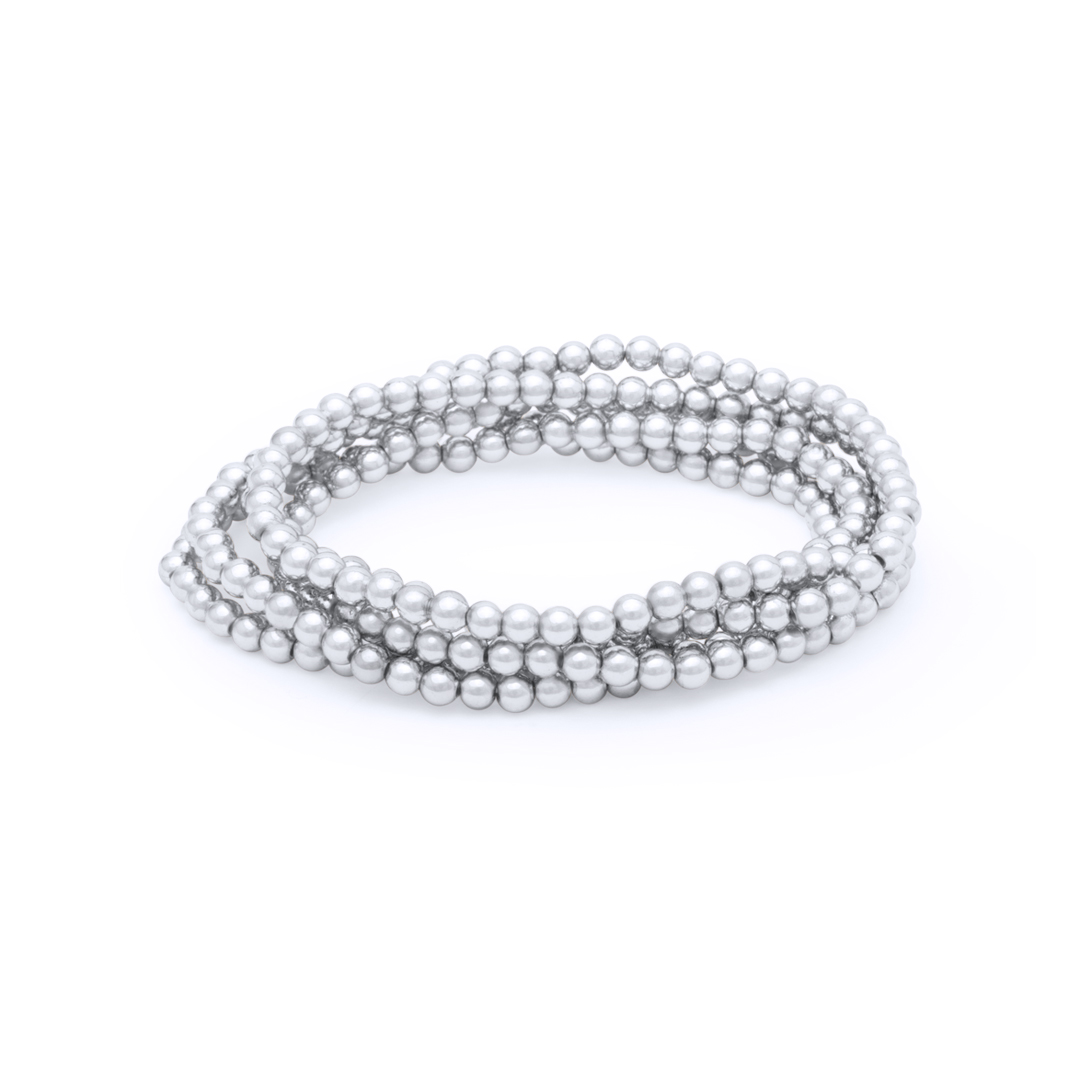 Elegante pulsera ajustable de perlas de cristal en colores dorado y plateado. Ajustable
