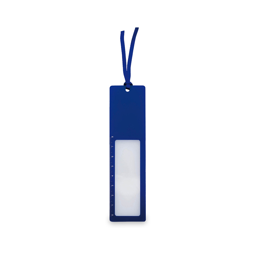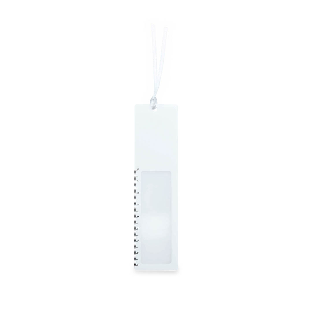 Original regla de 8cm en divertidos colores, de acabado brillante y con lupa integrada. Con cinta de transporte de tela a juego.