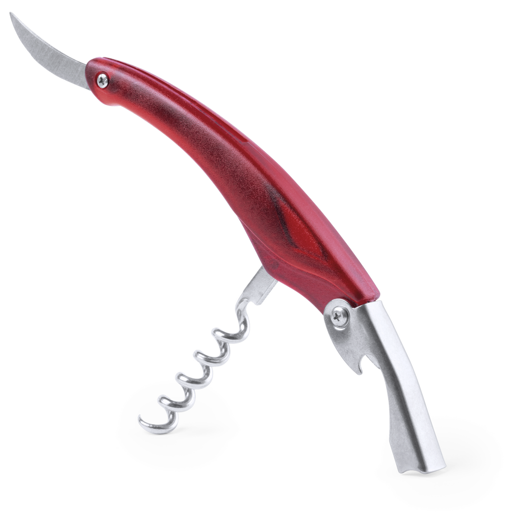 Clásico sacacorchos con accesorios de acero inox. Incluye cortacápsulas y abridor. Presentado en caja individual.