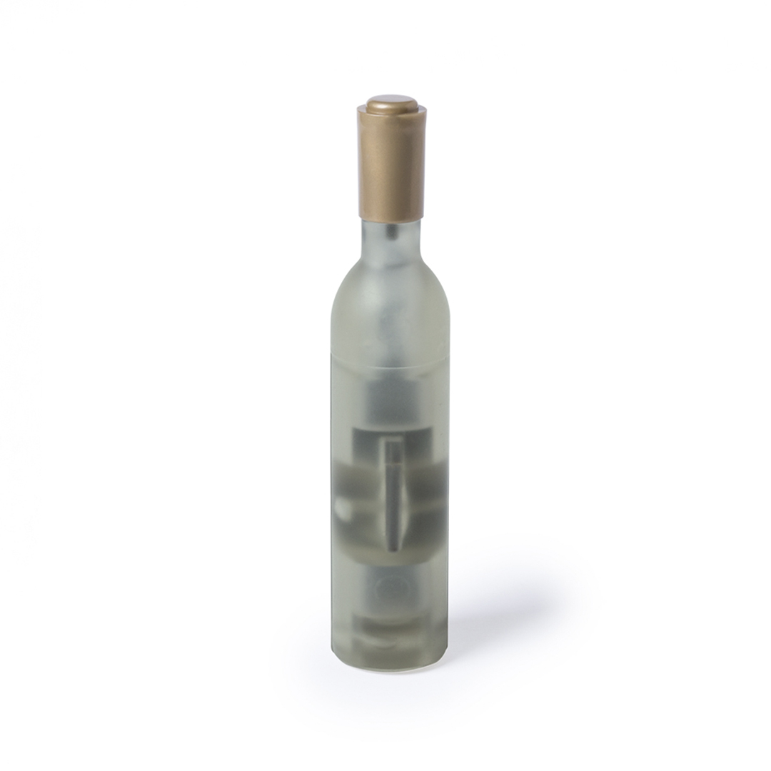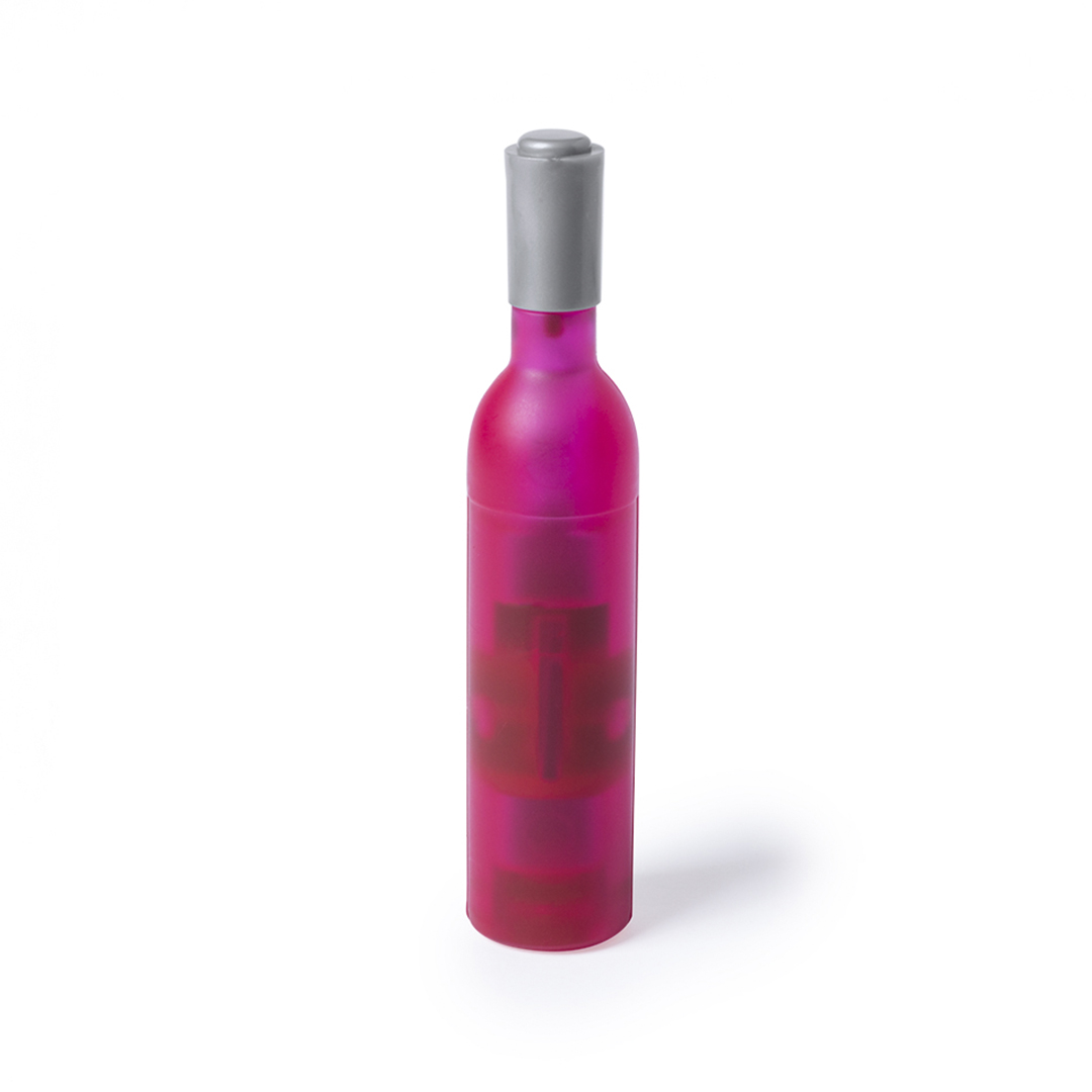 Divertido sacacorchos magnético con forma de botella de vino en diseños blanco, tinto y rosado. Con cuerpo en original acabado translúcido y función abridor. Magnético