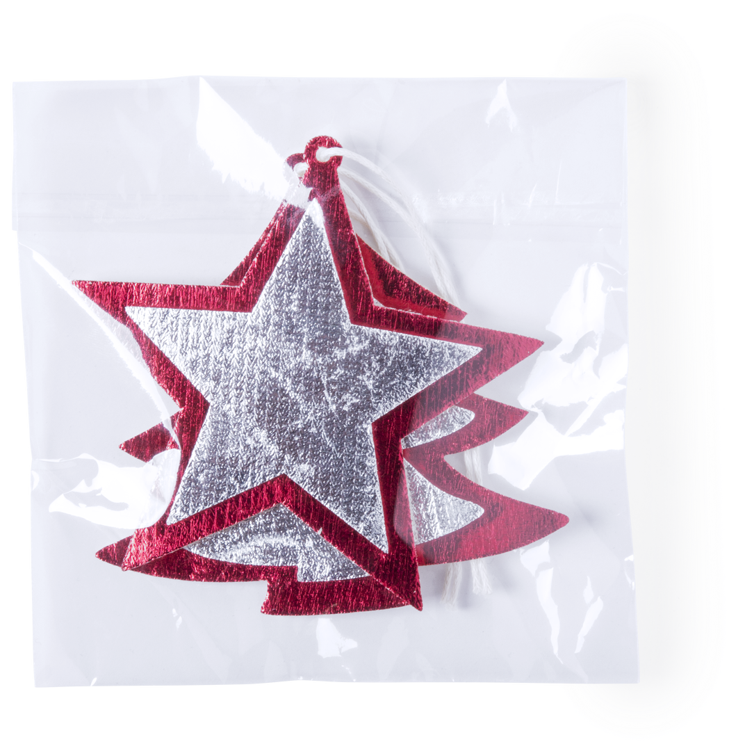 Set de figuras navideñas para colgar en material non-woven. Incluye árbol de navidad y estrella. 2 Piezas
