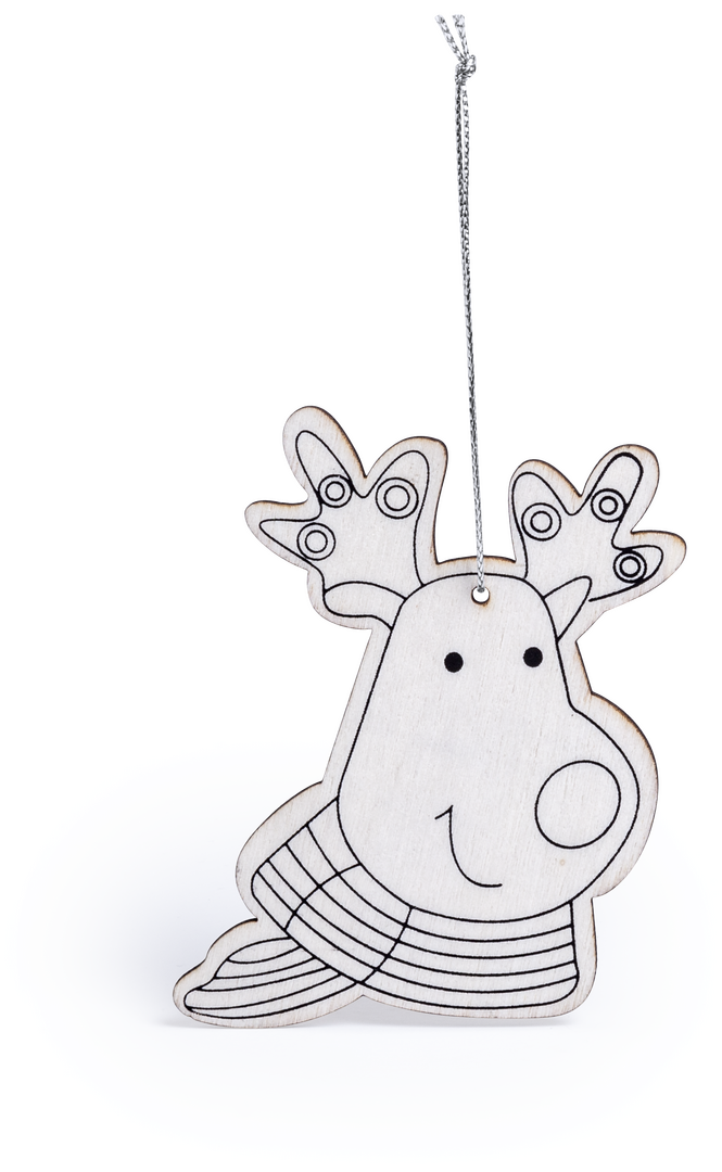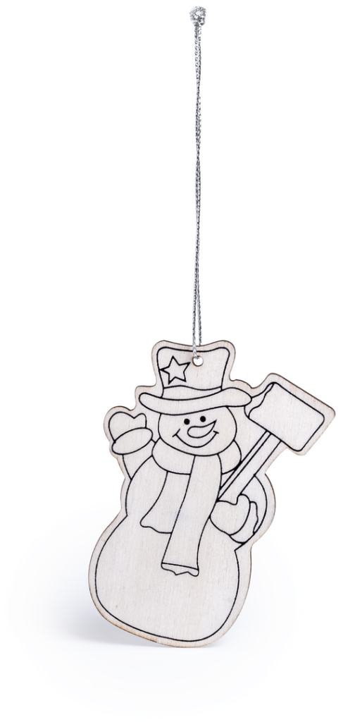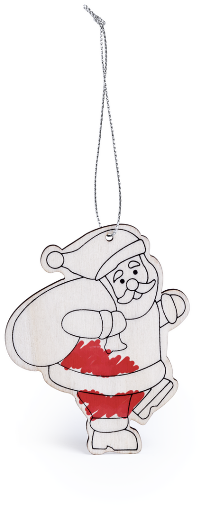 Set de 3 figuras navideñas en madera para colorear y colgar. Incluye Papá Noel, muñeco de nieve y reno. Con 3 rotuladores y presentado en bolsa individual con motivo navideño. 3 Piezas. 3 Rotuladores Incluidos
