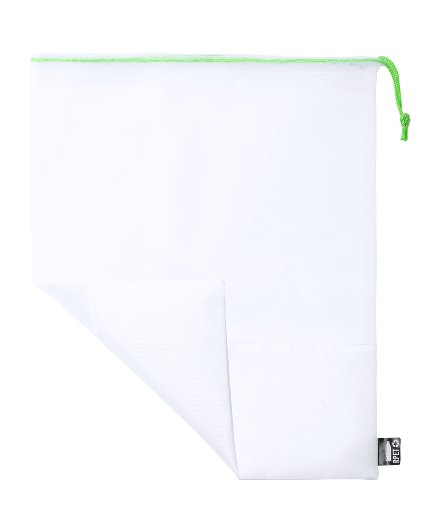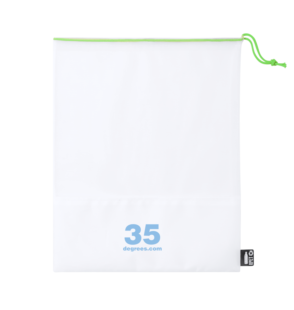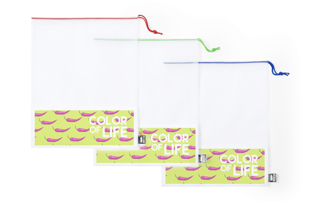 Set de bolsas de línea nature y en resistente RPET, elaborado a partir de plástico reciclado para así fomentar la reutilización de residuos plásticos y contribuir a la sostenibilidad del planeta. Incluye 3 piezas de 25×30 cm con cierre de cordón a color y 3 Piezas