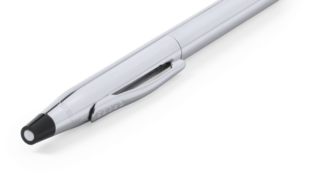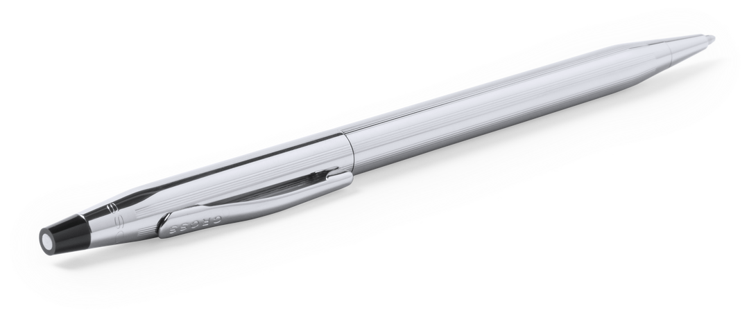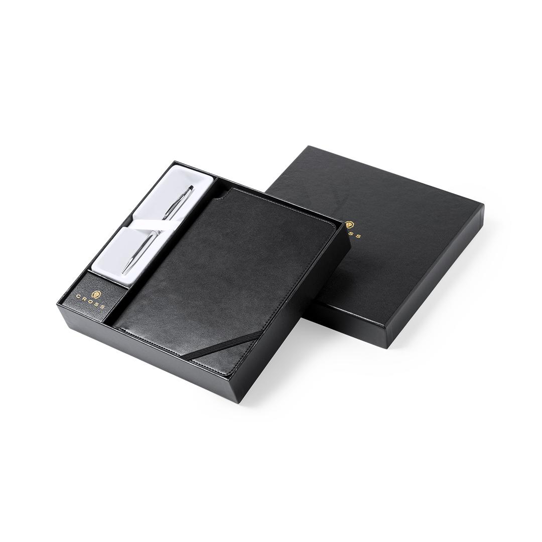 Set Century de Cross con bolígrafo y bloc de notas. Bolígrafo de mecanismo giratorio de tinta negra y cuerpo metálico de elegante terminación en plateado brillante. Bloc de notas con tapas de polipiel en acabado liso de color negro y 80 hojas con distribu Portada Rígida. Bloc 80 Hojas. Tinta Negra